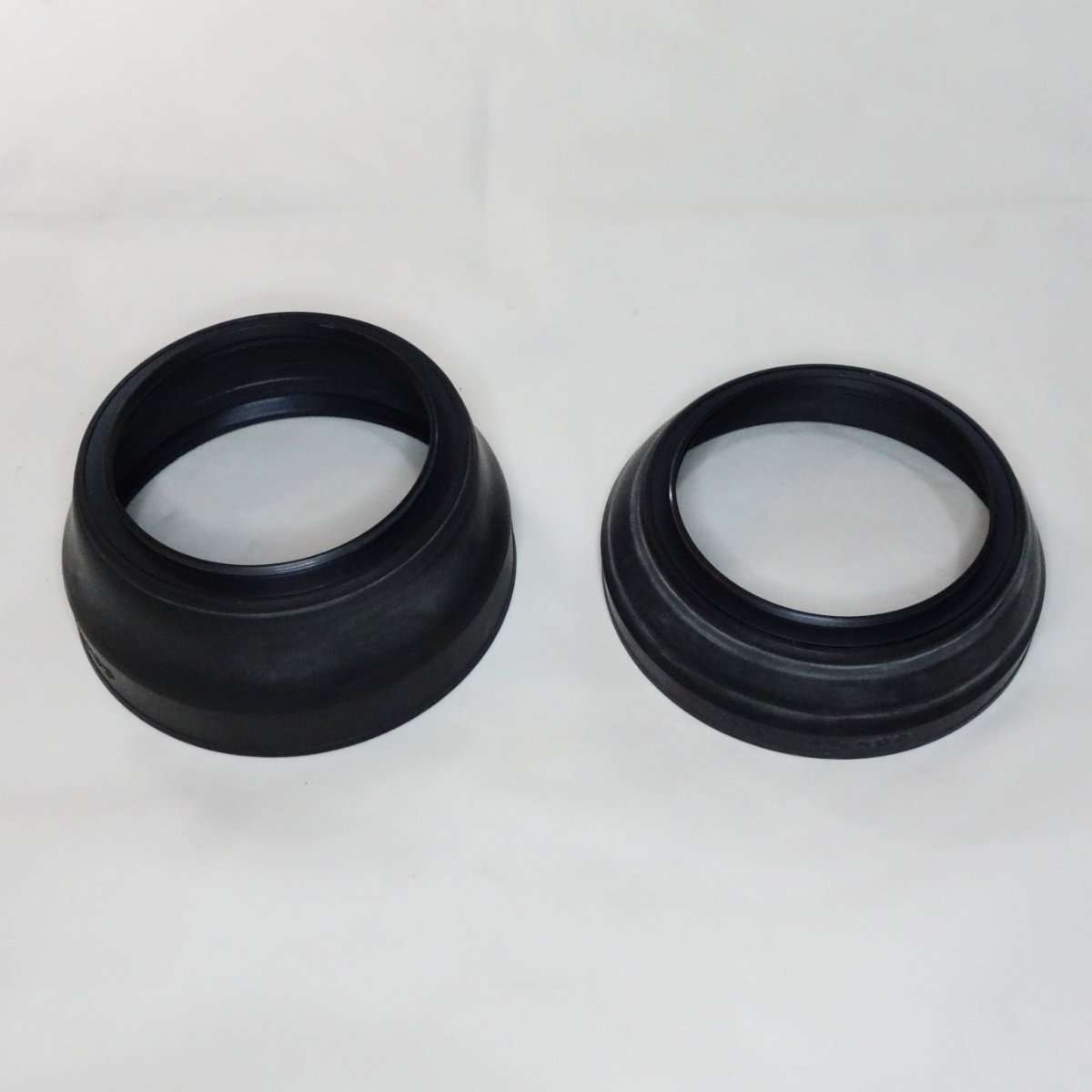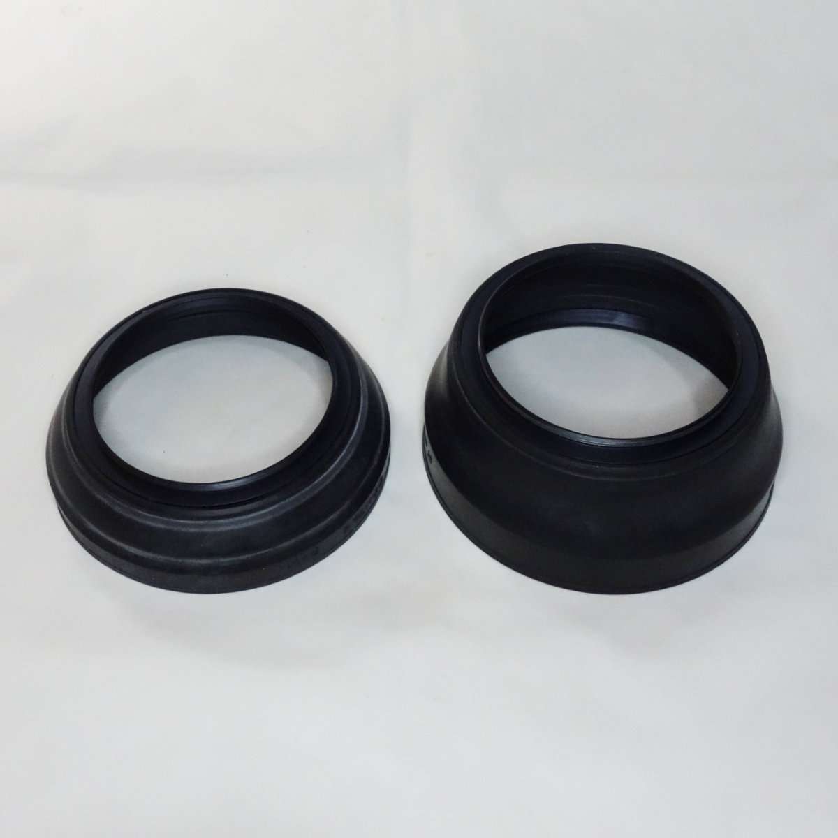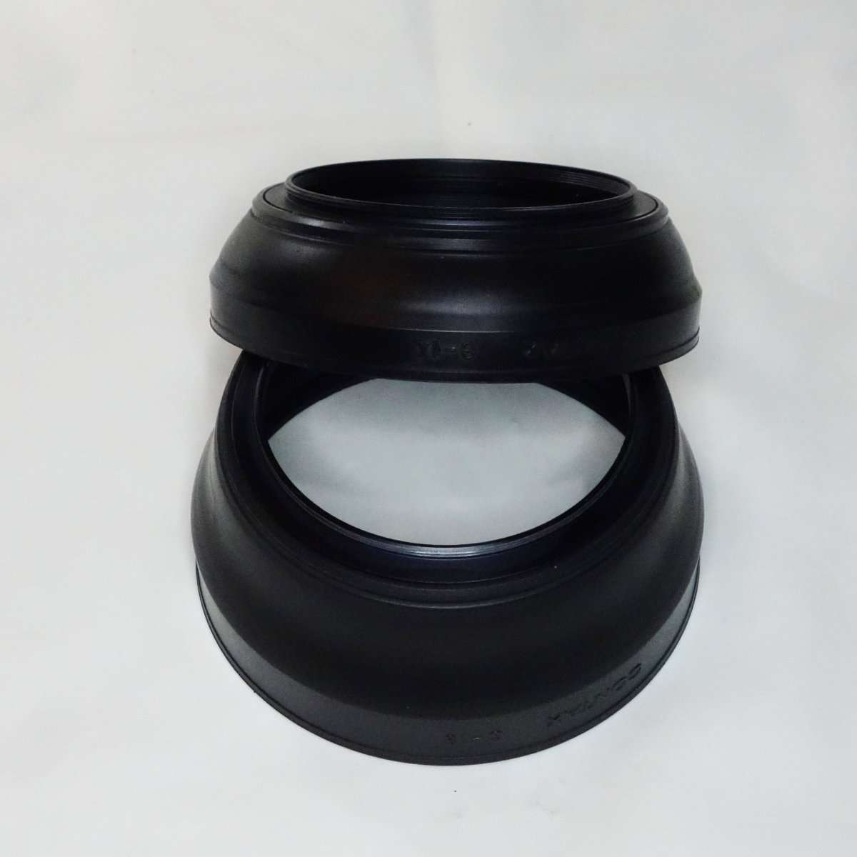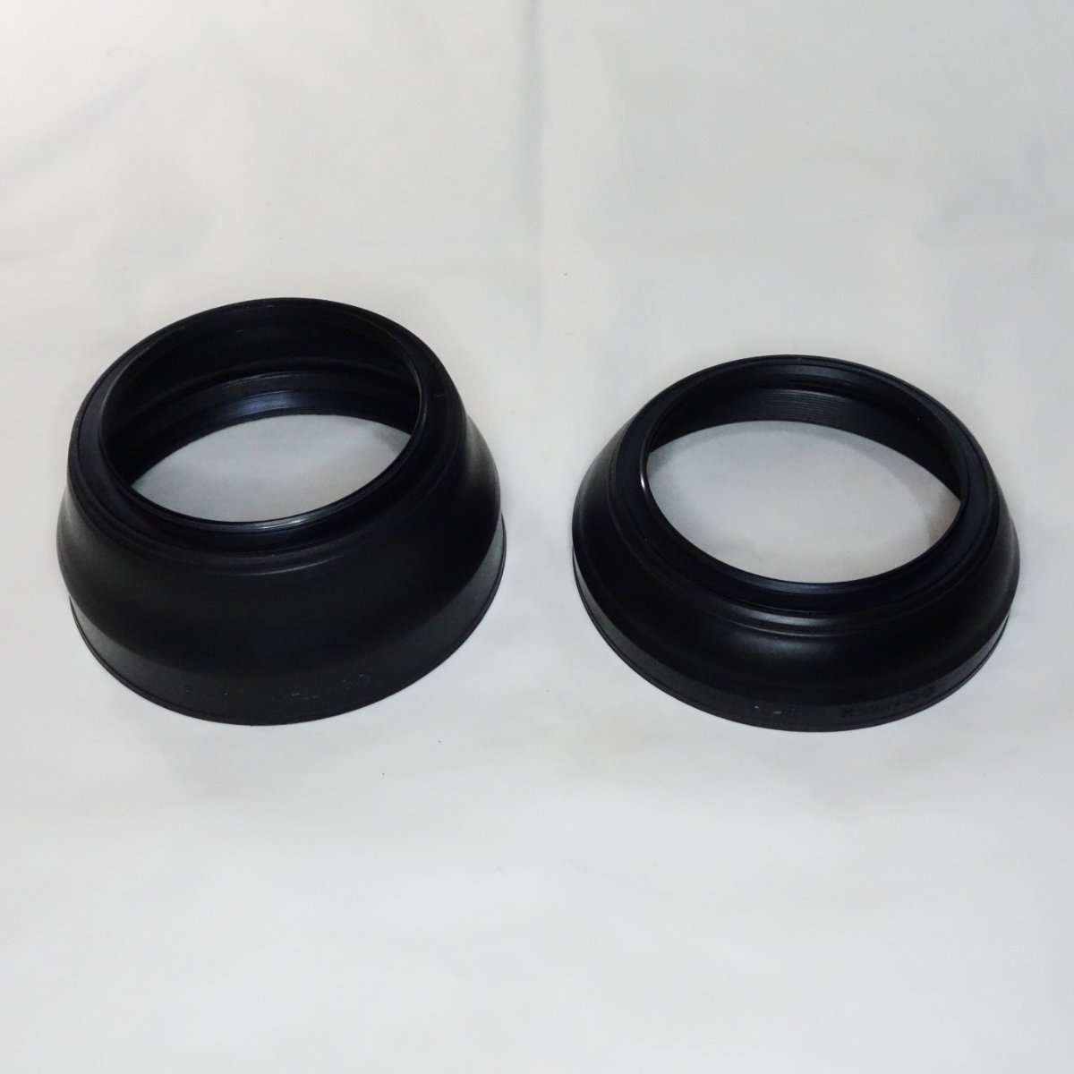 カメラレンズ用のラバーフードは持ち運び時やケースの中で折りたたみが出来てぶつけた時の衝撃にも強くレンズを守るので機能的に優れていて、ズームやレンズの画角の違いに対応するようにラバー自体で段階調節が出来たりする物もあります。ラバーフードは今でもサードパーティ製で出ていますが、最近では見栄えが貧乏くさいと人気がなく主要なカメラやレンズメーカーで出しているのをすっかり見かけなくなりました。フィルムカメラ用であればメタルフード、AF(オートフォーカス)以降の一眼レフカメラや現在のミラーレスカメラ用のレンズだとLeicaを除いてプラスチック製のフードが主流かと思います。