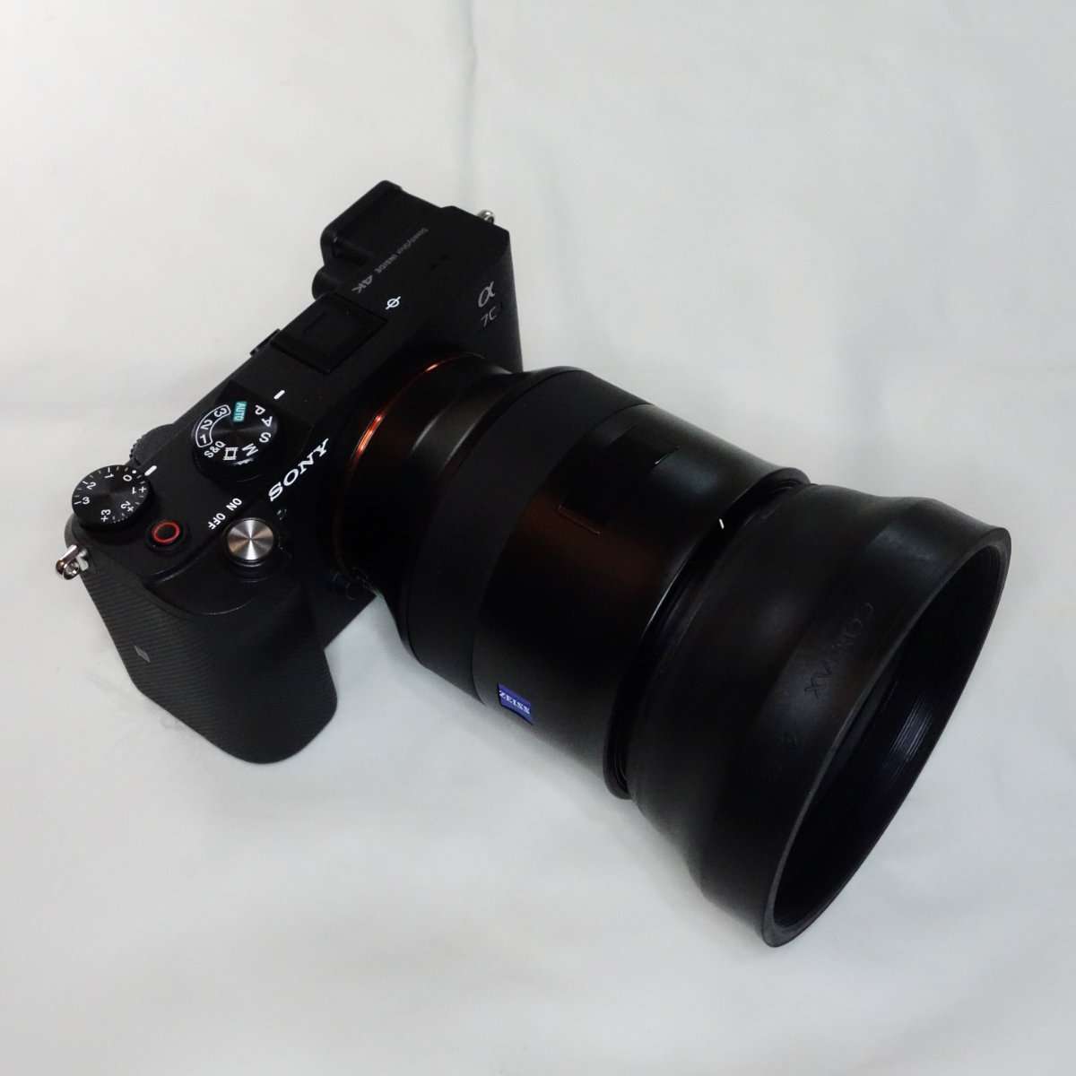 ソニーa7CにZeiss Batis 85mmを取り付けた状態です。Batis 85mmはそのまま撮って色がよい素晴らしいレンズで画角が85mmなのも気に入っています。Batis 85mmはフードと一体型のデザインなのでレンズの端がカーブしていて出っ張っているので、これをどうにかしたくて今回のフードを選んだのもあります。