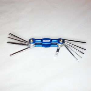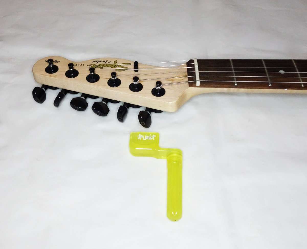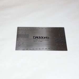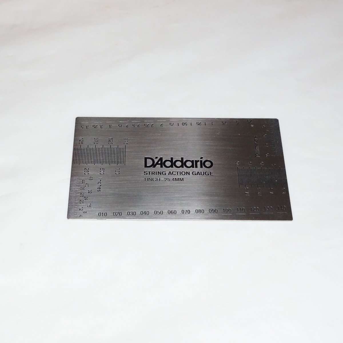違うのメーカーとゲージの弦に交換したのでギター自体のセッティングも変更する必要があります。弦のテンションが下がっているのでネックが順反りした場合はまずトラスロッドを調整します。トラスロッドの調整が出来ている状態でイントネーション(オクターブチューニング)と共に弦高を調整します。弦高調整にはダダリオのストリングハイトゲージ(弦高ゲージ)があると楽になります。レンチ類は通常のものを使用するのもよいですが、出先でいつでも調整出来るようにマルチツールは1つ揃えておくとよいでしょう。
