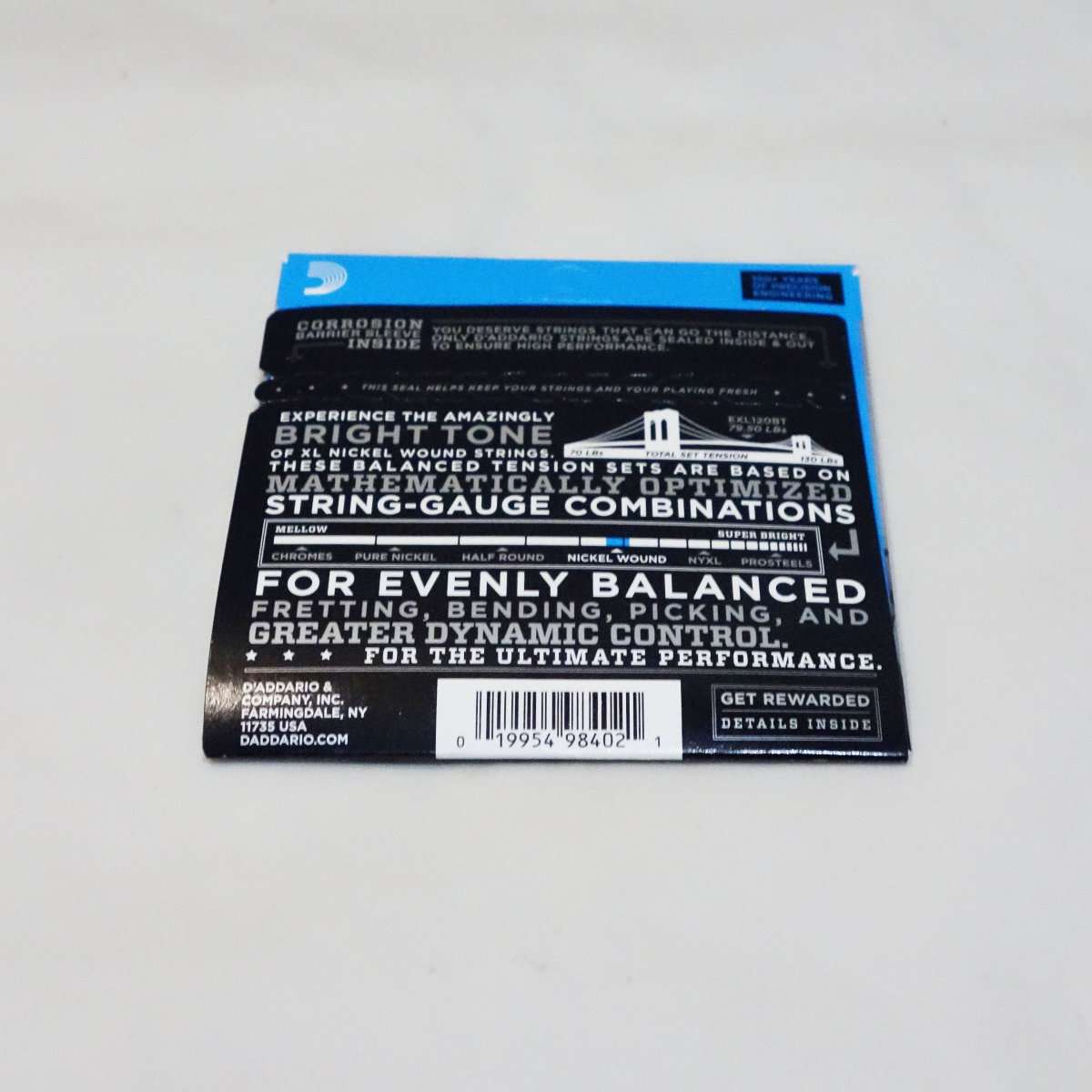今回購入したのはD’Addario EXL12BTでゲージは009-040のスーパーライトです。バランスドテンションとはこれまで基本とされていたゲージとは違い各弦のテンションがより統一されている弦になります。009-042の場合は009-040となり3弦から6弦までが従来より細くなっています。