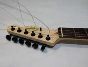 弦を張ってチューニングをしたら少し演奏してみます。演奏しながら音がおかしくないか、弦の通し間違えやペグ側もブリッジ側もゆるみなどがない事を確認します。新しい弦が問題なく張られているのを確認が出来たら余った弦を切ります。残すのもロックですが古臭くお子さんの目などに刺さったら危ないので切っておくのが最善でしょう。