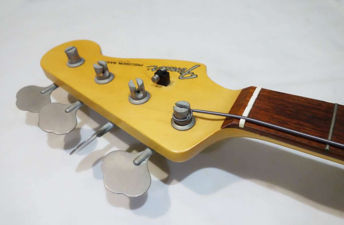 使用するベースはFender Japan Precision Bass(P-Bass、プレベ、プレシジョンベース)で、これまで張っていた弦はエリクサーNanowebでゲージは045-100のライトゲージです。エリクサーNanowebベース弦は巻弦全体をコーティングしている長持ちする弦の代表格です。エリクサーの弦は手触りもするするで弾きやすく、音質も同じギター用のNanowebよりよりブライトでいつ変えたらよいのかわからないくらい長持ちします。
