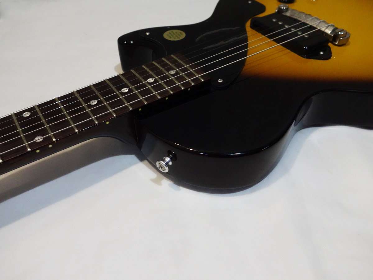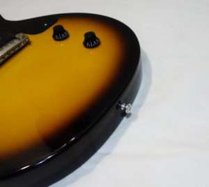 使用するのはギブソンレスポールジュニアでカラーはヴィンテージタバコバーストです。極太ネックとP90ピックアップの組み合わせでまさにジュニアな音がする最高のギターです。
