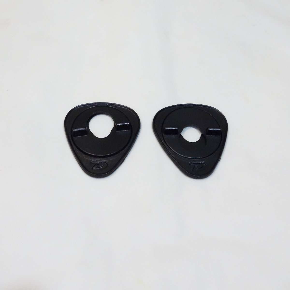 他のギターとベースにはシャーラーのストラップロックピンを使用していますが、通常のエンドピンでもストラップの落下を防ぐ事が出来るジムダンロップのストラップロックを取り付けてみました。ジムダンロップのストラップロックは通常のエンドピンにはめ込んで本体内側を回転させて取り付け穴を小さくさせる事によってストラップの脱落を防ぎます。これでレザーストラップの取り付けも完了しギターを振り回しても安心です。