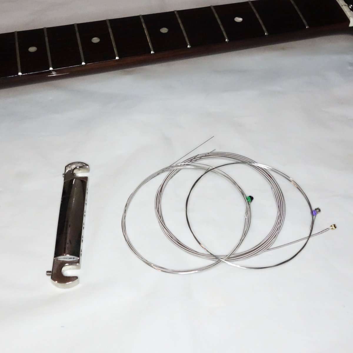 はずした弦は新しい弦を取り出したパッケージに入れて管理します。日付を記載しておくとどれくらいの期間弦を使用したかわかり便利になります。もし新しい弦に問題が合った時にも元の弦に戻す事が出来ます。(ギブソンは弦の張り直しも楽です)