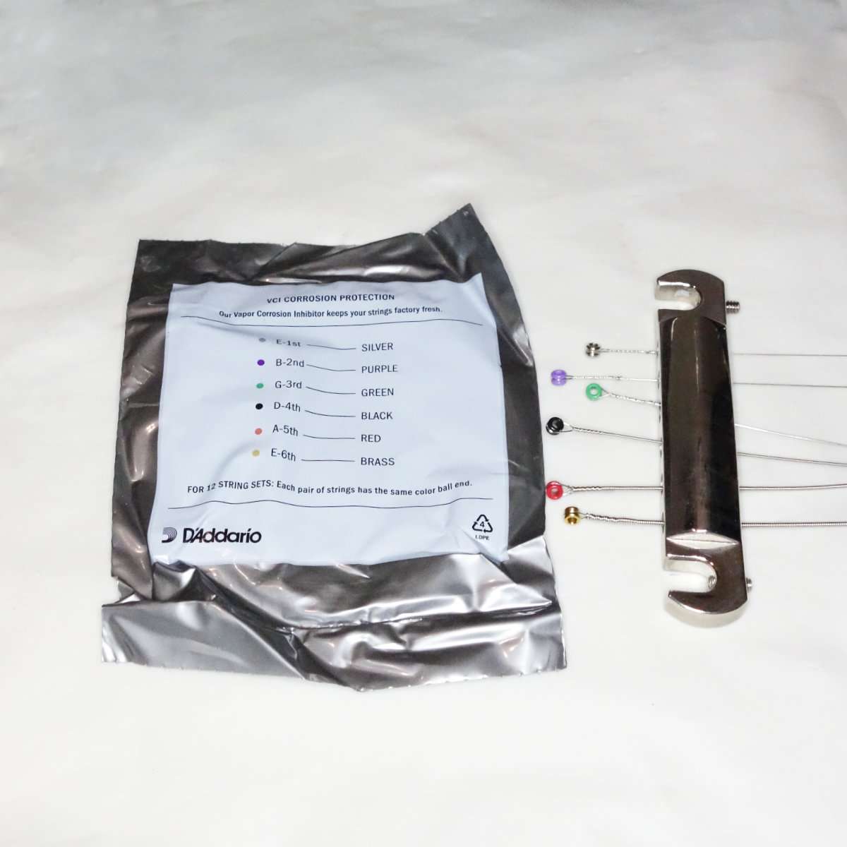 ギブソン系ギターはフェンダーのテレキャスターやストラトキャスターなどと違って1本ずつ張るよりはブリッジに弦を先に通してしまった方が楽になります。ダダリオのギターやベース弦のボールエンドはどの弦なのか色分けがされているので間違える事はそうないと思いますが、確認しながら弦を張りましょう。