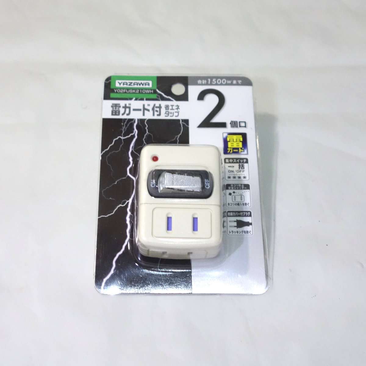 ベッドルームライト用にスイッチ付きを使用していたので、サージプロテクト(雷ガード)付きのタップにしました。購入したのはYAZAWA(ヤザワ)の商品で型番はY02FUSK210WHとなります。こちらは使用中に赤いLEDが光ります。