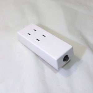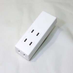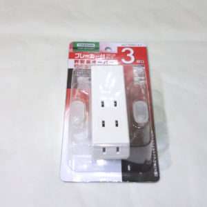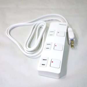 容量が多い機材を使った時にブレーカーが落ちるようにブレーカー付きの電源タップも用意しました。これが今回の本命と言ってもよい商品で、半田ごてに限らず電源を使いすぎの時に燃えたりする前に自動的にブレーカーが落ちるようにします。こちらもヤザワの商品で型番はY02FUB300WHとなります。こちらは使用していないプラブにホコリが入らないようにするキャップも付属しています。