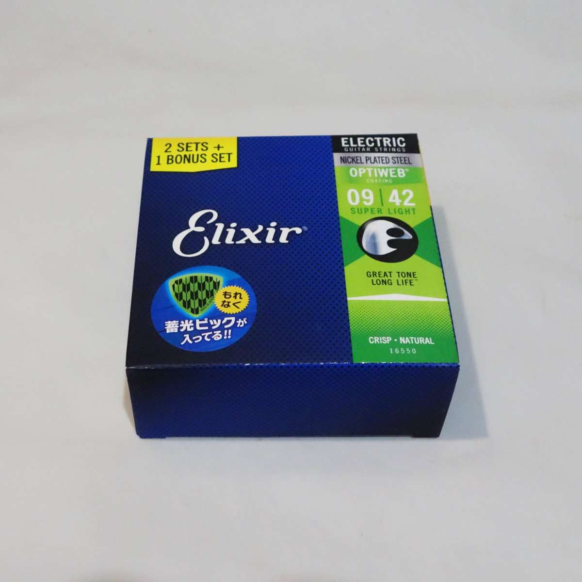 まずはElixir Optiweb(エリクサーオプティウェブ)のゲージは009-042で、巻弦はコーティングされていてプレーン弦はAnti-Rustと言う錆止め加工がされています。これまでの同じElixir Nanoweb(ナノウェブ)より薄いコーティングで、Nanowebよりクリスピーな音がする弦と位置づけられています。