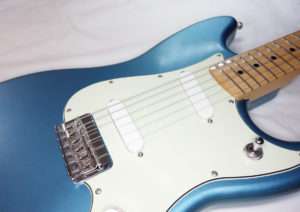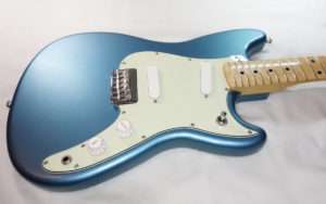 使用するのはFender Player Duo-Sonic(フェンダープレイヤーデュオソニック)でメキシコ製のギターです。ショートスケールで弾きやすく音も素晴らしいおすすめのギターです。Duo-Sonicには工場からの出荷時は010-046のゲージの弦が張られていましたが、より楽に弾けるように009-040のダダリオバランスドテンション弦に変更していました。