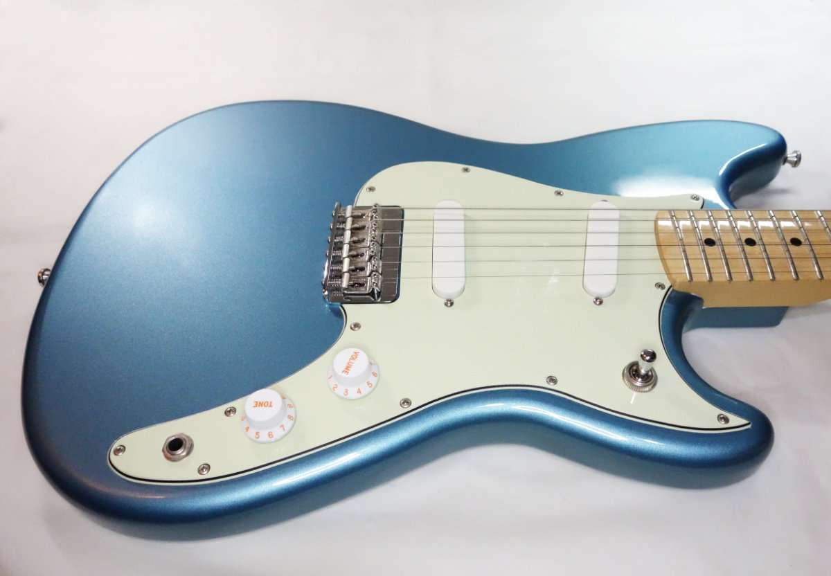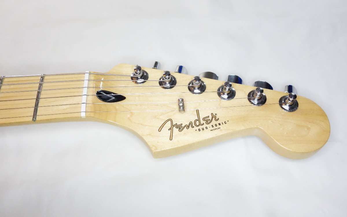 使用するのはFender Player Duo-Sonic(フェンダープレイヤーデュオソニック)でメキシコ製のギターです。ショートスケールで弾きやすく音も素晴らしいおすすめのギターです。Duo-Sonicには工場からの出荷時は010-046のゲージの弦が張られていましたが、より楽に弾けるように009-040のダダリオバランスドテンション弦に変更していました。