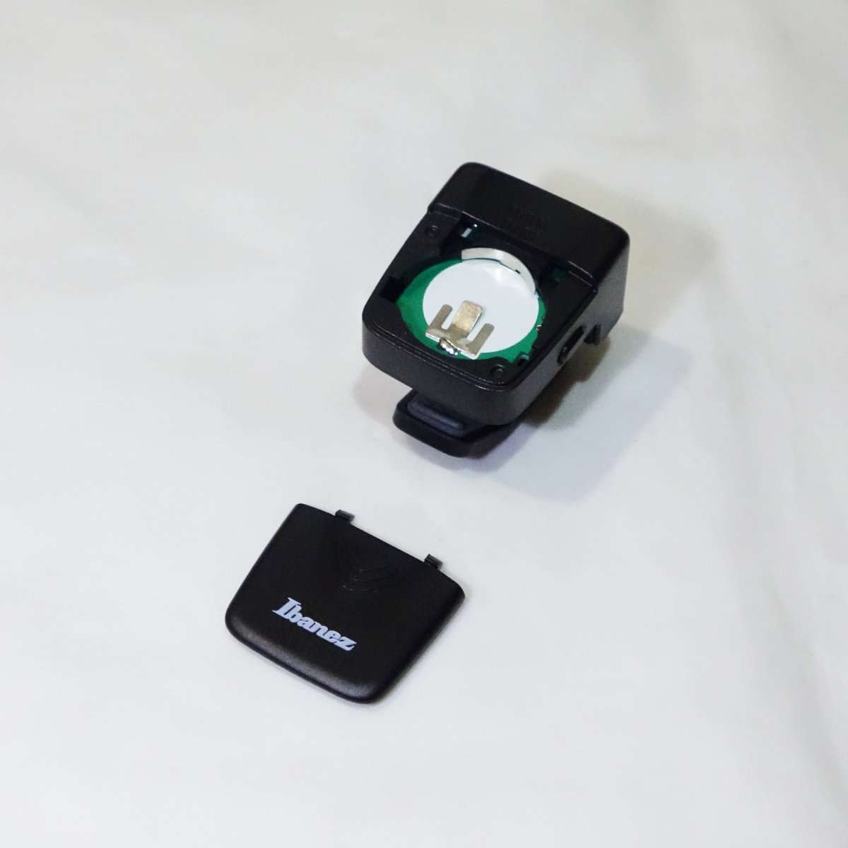 本体のフタを取り外して付属のボタン電池CR2032を取り付けます。ボタン電池は文字が記載されているフラットな面が実は+です。ボタン電池の取り付けでピンセットを使用する方がたまにいますが、つまんだ状態で既にショートしているのでやめておきましょう。ボタン電池を取り付ける時はクロスなどを使用して指紋が付かないようにするのが基本です。商品に付属している電池は動作確認用で容量が少ない事が多いのと、クリップチューナーは液晶画面が光って電池のもちがあまりよくないので、CR2032をまとめ買いしておきましょう。