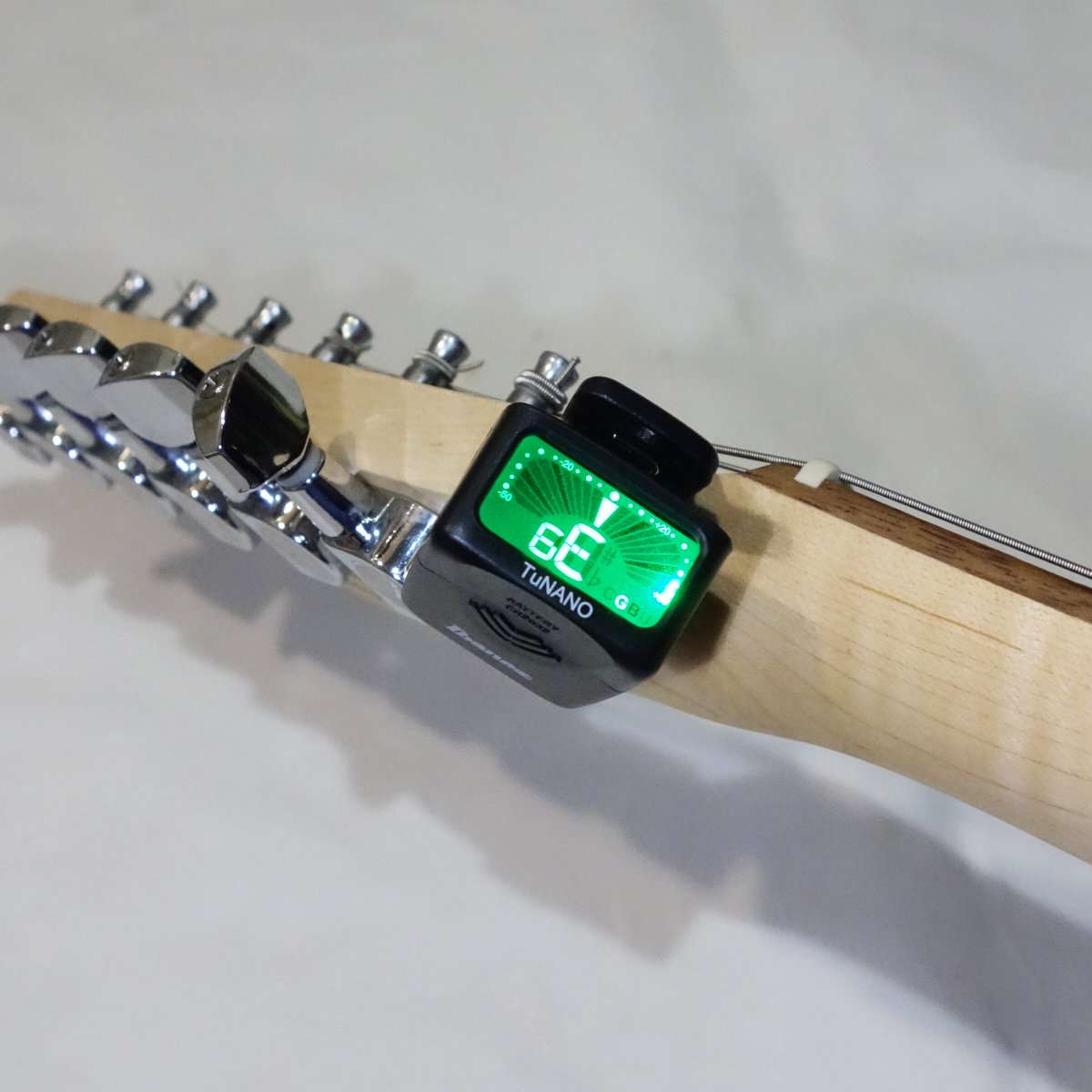 今回購入したのはIbanez(アイバニーズ、以前はイバニーズ)のクリップチューナーTuNANOです。ギター、ベース、ウクレレ、通常のクロマチック対応で、コンパクトなのでヘッド裏に目立たず取り付ける事が可能なチューナーです。先に言うと気軽にパッとチューニングを合わせるのであれば、Ibanez TuNANOは音への反応と食いつきがよく最速で合わせられて最高です。