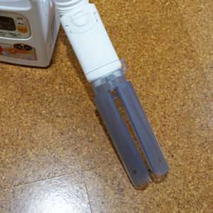 便利な靴乾燥機能ですが、革靴やパンプスなどの厚みがないかかとの靴だと両側に同時にノズルが入るのですが、かかと部分が厚めのスニーカーなどでは両方同時にノズルはきつくて入らないので片足ずつ乾燥する事になります。このパーツを作る時にオフィスでしかテストしなかったのでしょうが、新型ではきっと改良される事でしょう。