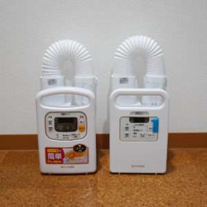 アイリスオーヤマのふとん乾燥機は布団だけでなく濡れているととても気になる靴を乾燥させられるノズル付きで便利です。梅雨も含めて蒸し暑く湿度が高く晴天だとしても外に干せる時間も限られていて、ふとんなどは完全にはカラッとしません。冬は寒いですし乾燥させるだけでなく温めるには布団乾燥機が一番です。
