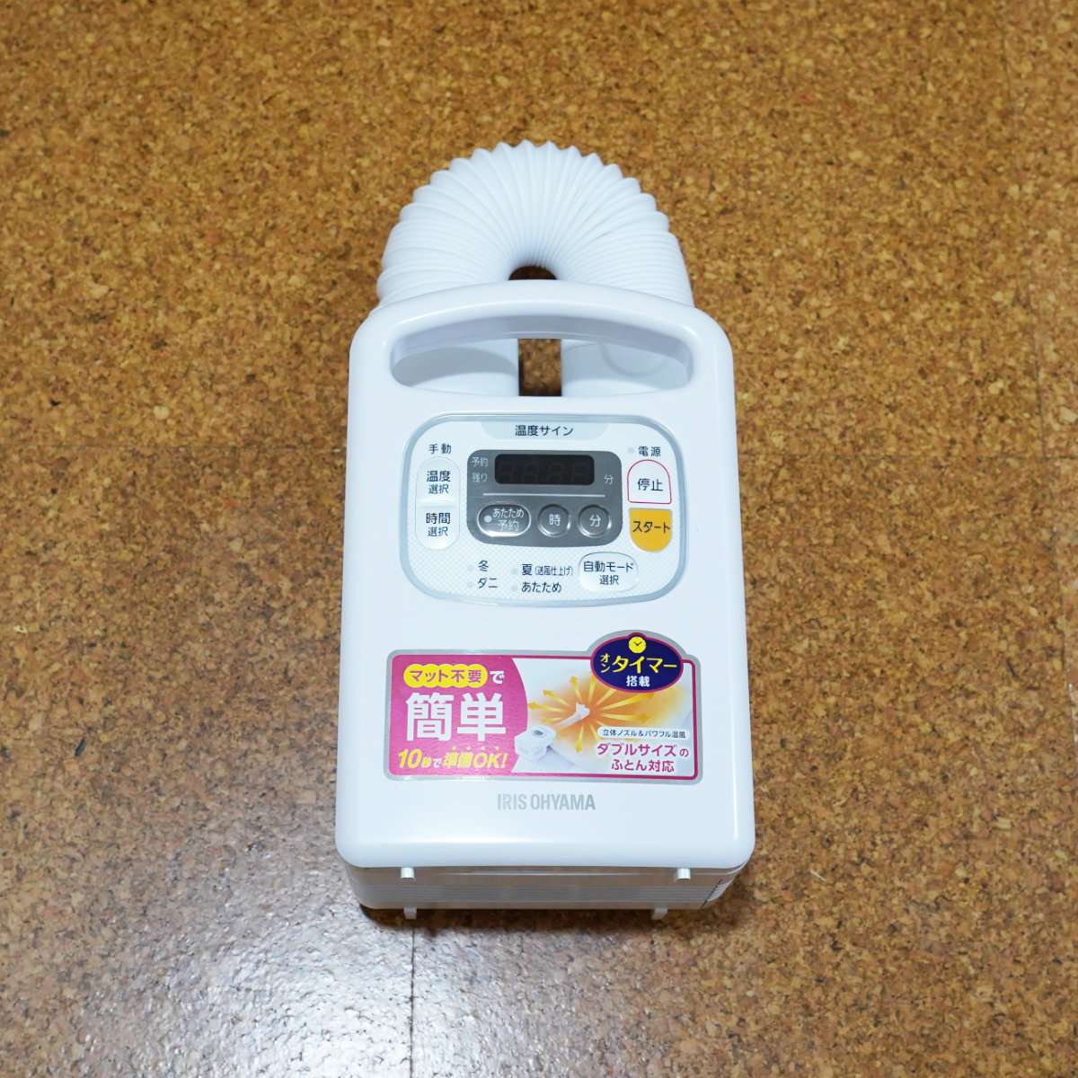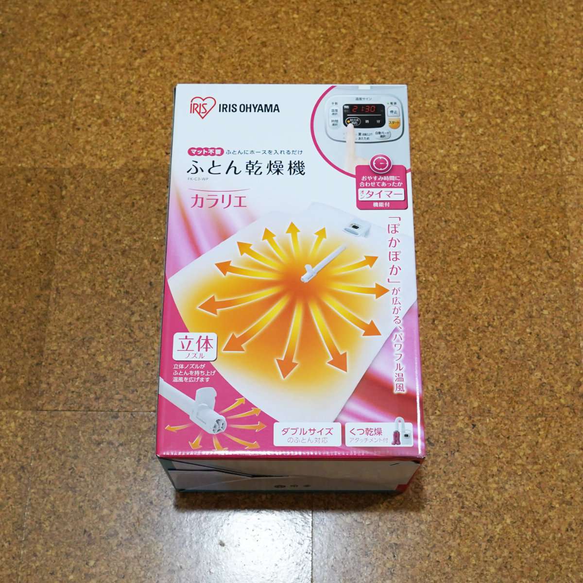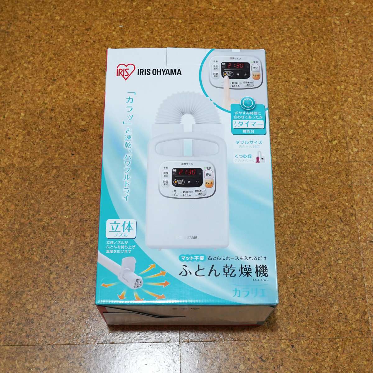 今回購入したのはアイリスオーヤマのふとん乾燥機FK-C3-WPです。以前のようにマットの必要がなくホースを入れるだけで布団やシーツなどが乾かせる進化した商品です。