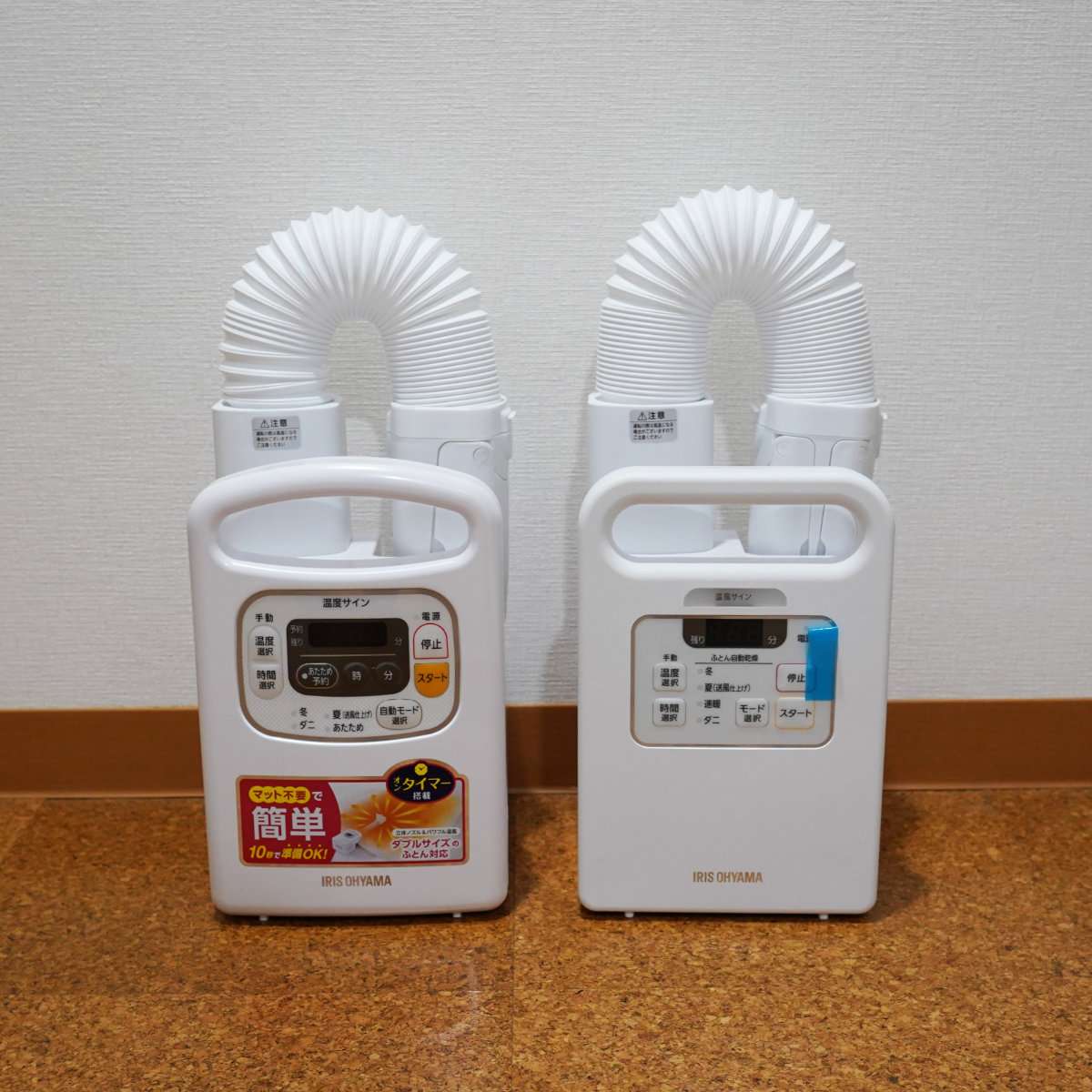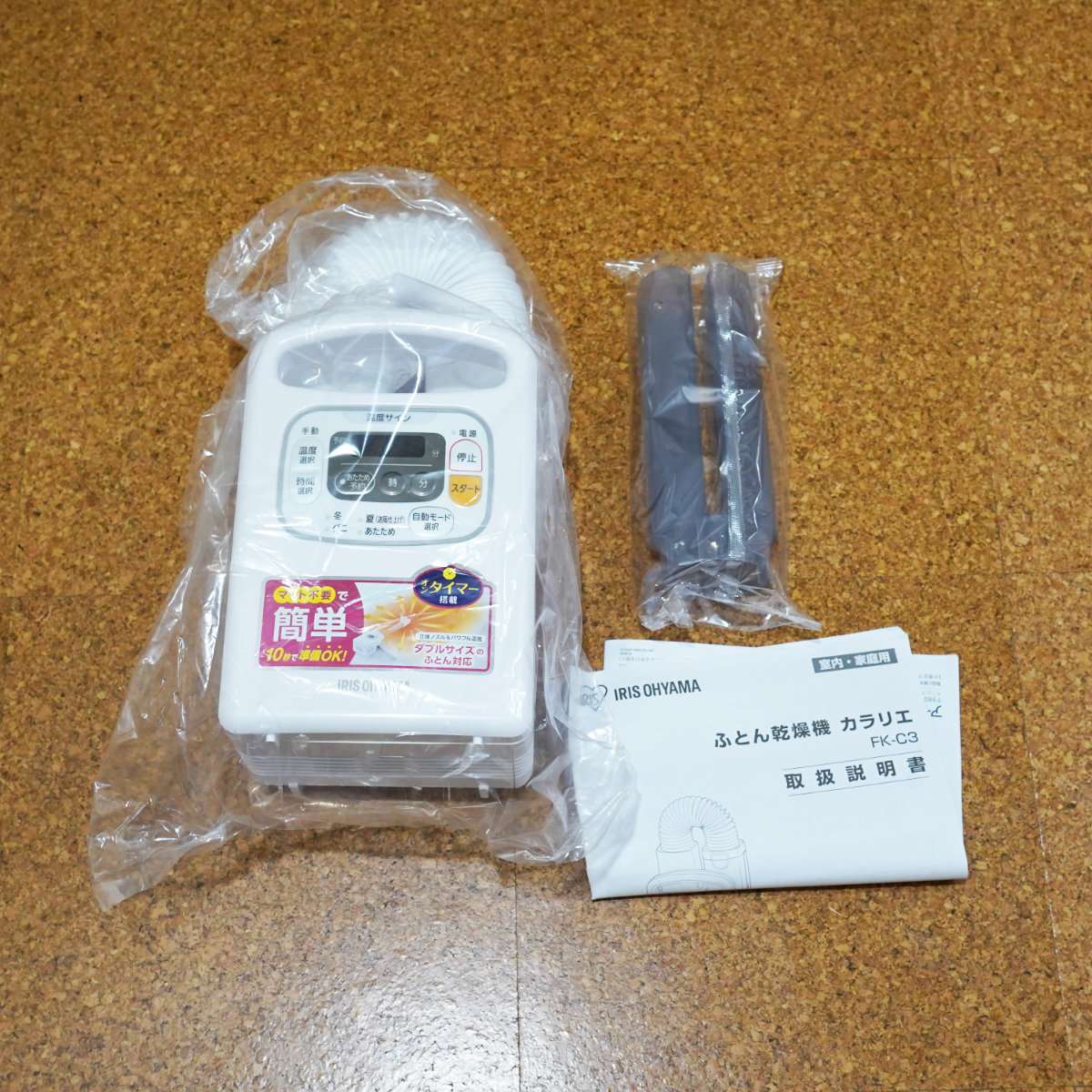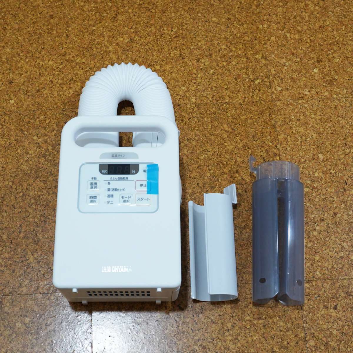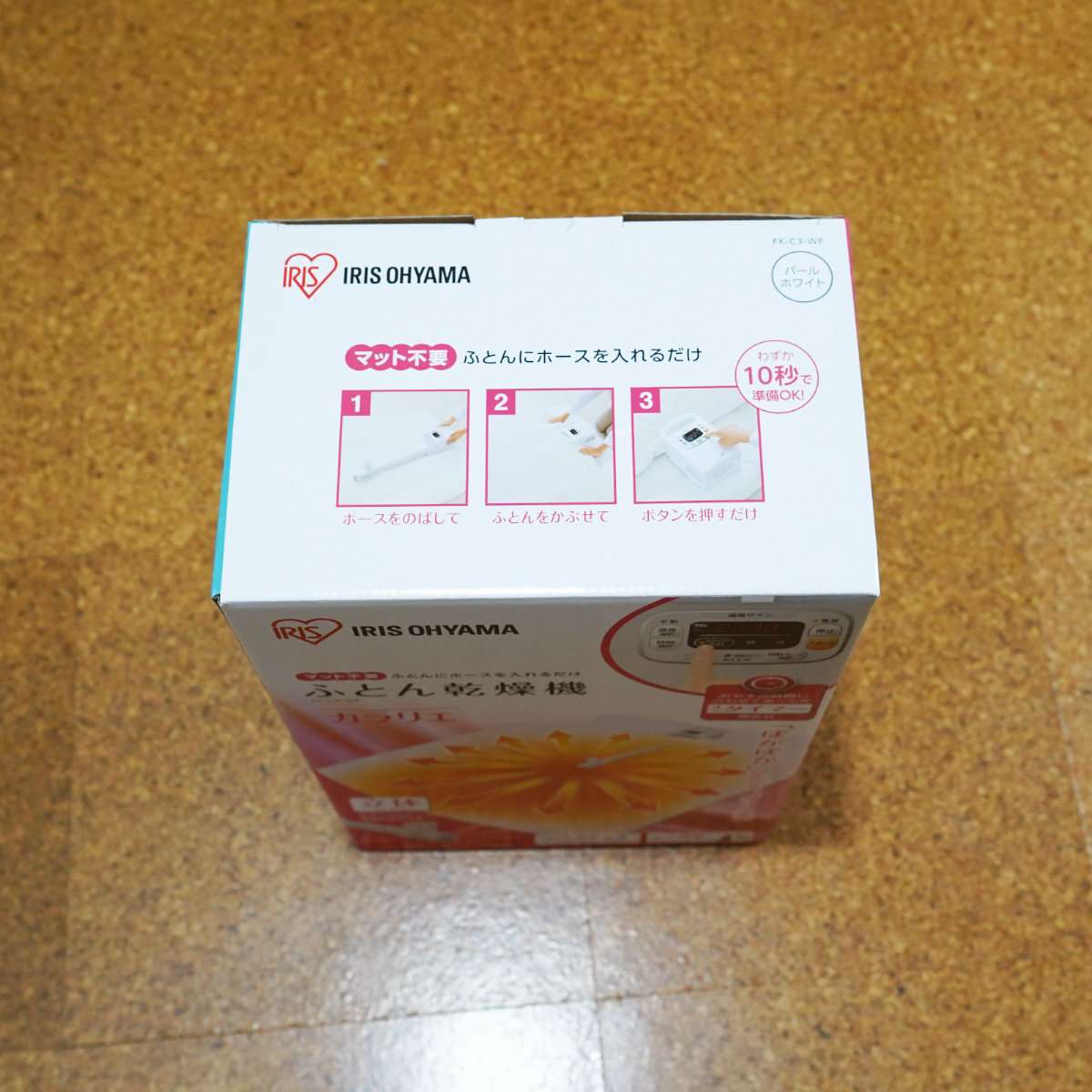今回購入したのはアイリスオーヤマのふとん乾燥機FK-C3-WPです。以前のようにマットの必要がなくホースを入れるだけで布団やシーツなどが乾かせる進化した商品です。