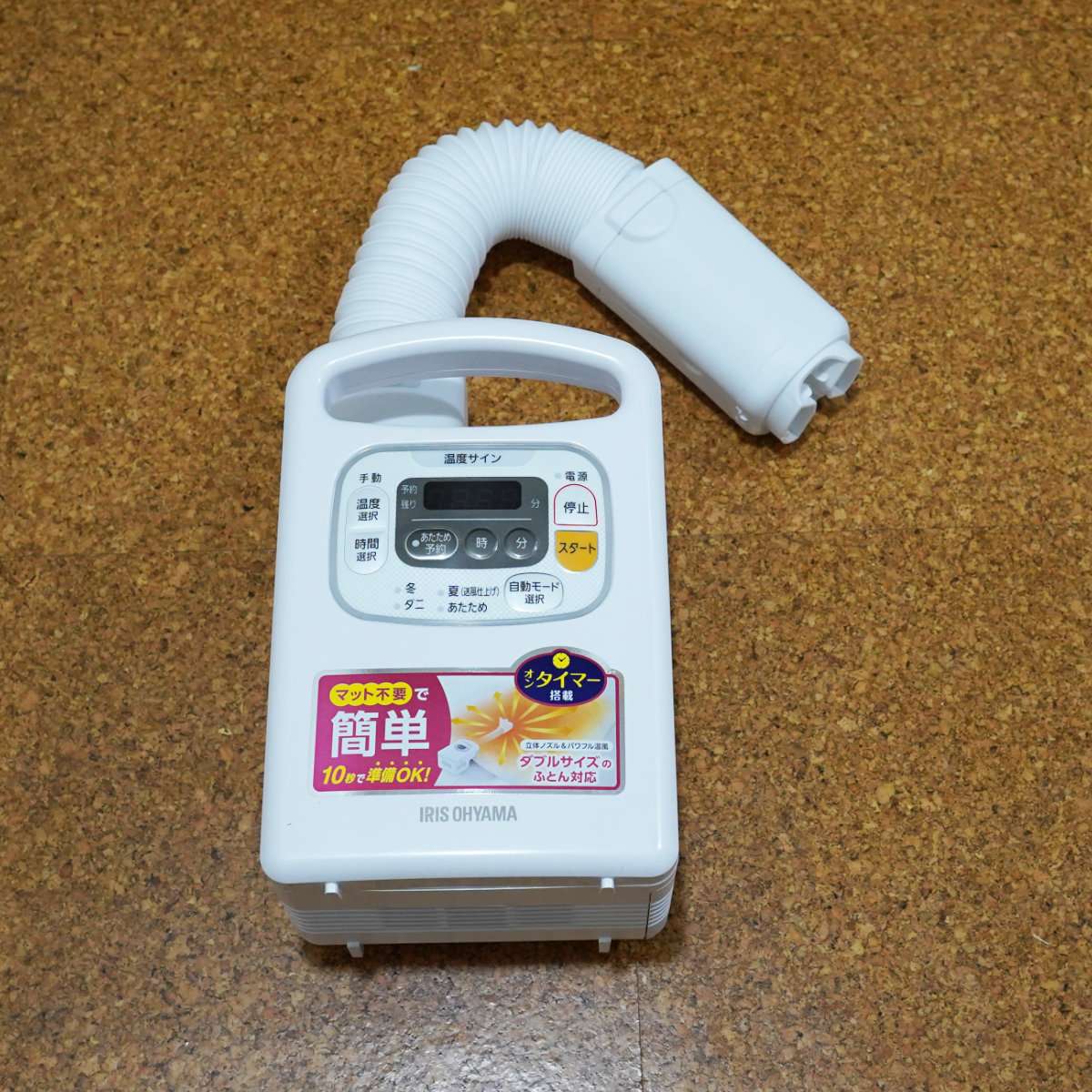 アイリスオーヤマのふとん乾燥機は布団だけでなく濡れているととても気になる靴を乾燥させられるノズル付きで便利です。梅雨も含めて蒸し暑く湿度が高く晴天だとしても外に干せる時間も限られていて、ふとんなどは完全にはカラッとしません。冬は寒いですし乾燥させるだけでなく温めるには布団乾燥機が一番です。