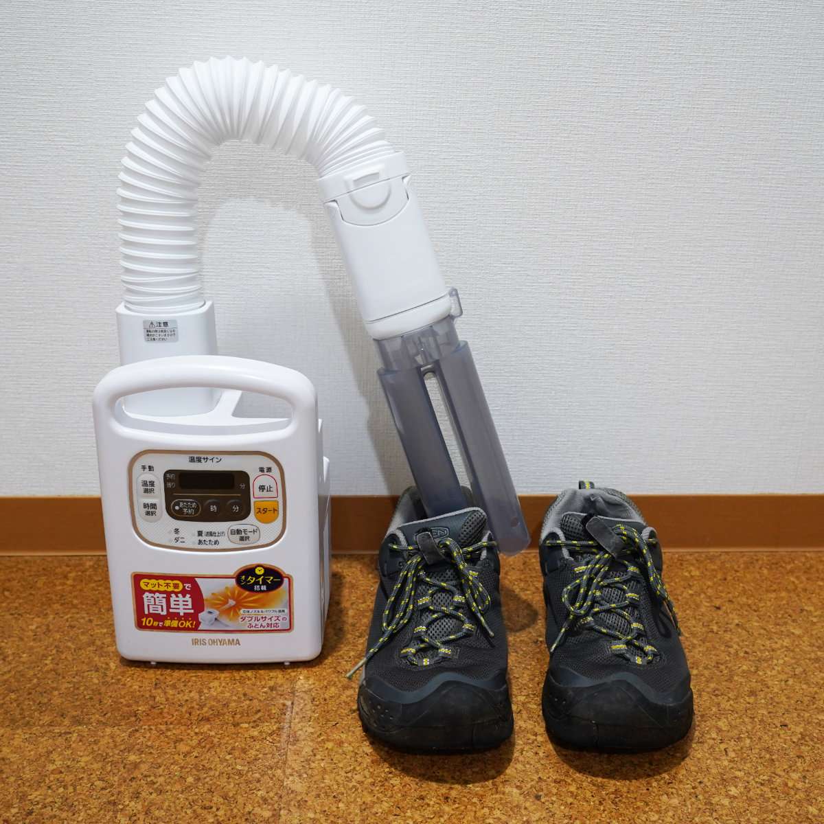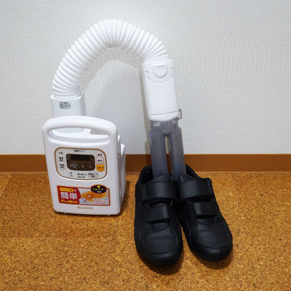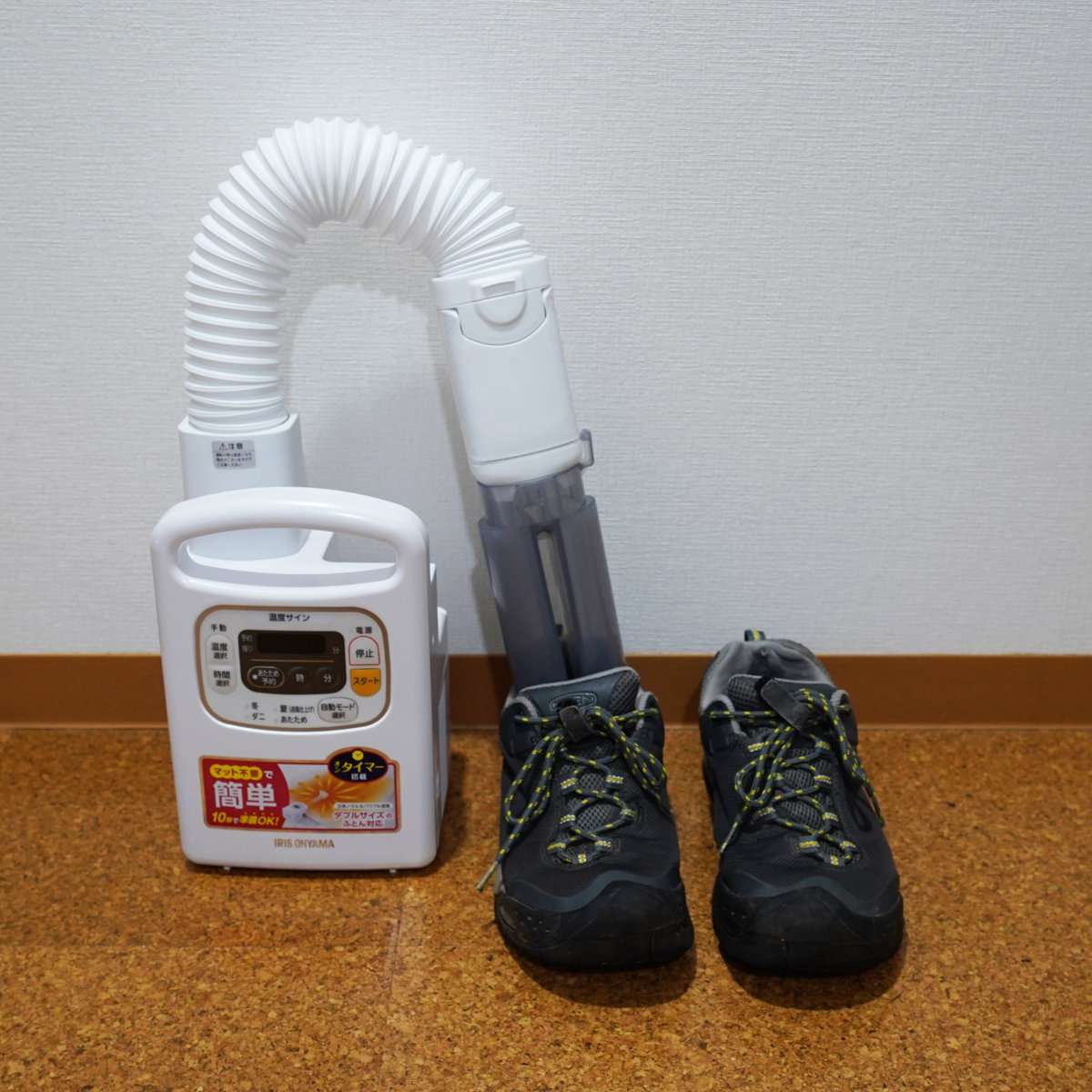 布団乾燥機の進化と言えば靴を乾燥出来るようになった事でしょう。アイリスオーヤマの布団乾燥機には靴乾燥用のアダプターノズルが付いているのでホースに取り付けると靴乾燥が可能になります。