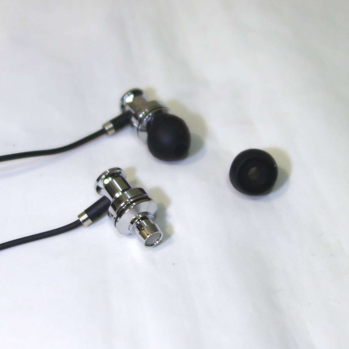 イヤホン本体からイヤパッドをはずしてみました。メーカーの説明によるとイヤパッドは医療用シリコンを使用しているようです。パッドをはめる部分の直径は標準的な経なので、いろいろとお気に入りのイヤパッドに交換する事も可能です。最近は耳に痛いイヤパッドもかなり減り、このJA40も新し目の日本大手メーカーなどのパッドにかなり似た感じかつケーブル同様にサラっとした素材なので、特にお気に入りイヤパッドでもない限り付属のままで十分かと思います。