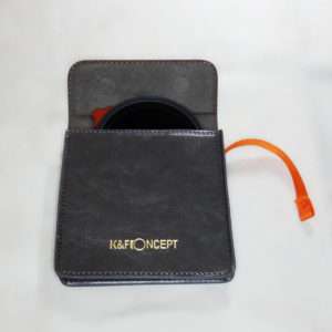 フィルターの持ち運びに用に専用ケースが付属しています。ケースも立派な作りでフィルター保護だけでなくフィルター面に指紋が付かないように、フィルターを触らずに紐をひっぱるとフィルターが取り出せるようになっています。