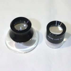 フォーカシングスクリーンに画像が写るのが見えてもさすがにこのサイズですと肉眼でフォーカスをきちんと合わせる事は難しいのでルーペを用意しましょう。フィルム面に置ける大きさでないとフォーカス調整に使えないのでここでは小型な物を選びます。倍率は10倍以上がフォーカス調整がしやすく、画質の面でも10倍の物がバランスがよいです。安価なルーペですとPEAK(ピーク)のルーペが明るくフィルムのチェックなどにも使える画質でおすすめです。今時なんでもある100円ショップにもルーペがあると思いますが、ガラスレンズではないでしょうし光学製品はガラス製で比較的よい物を使用した方がよいと思います。