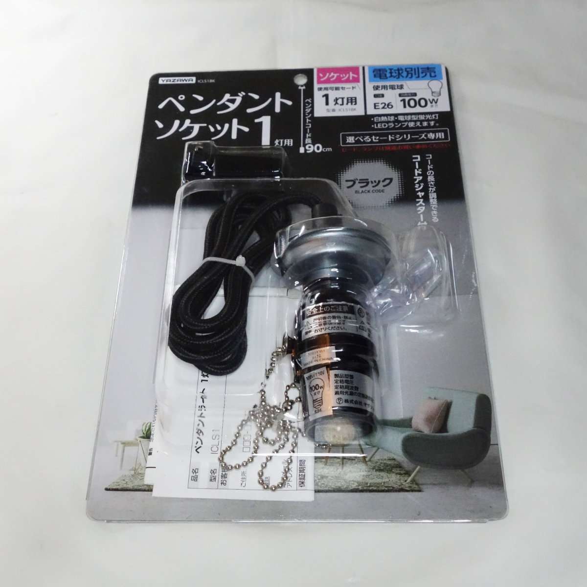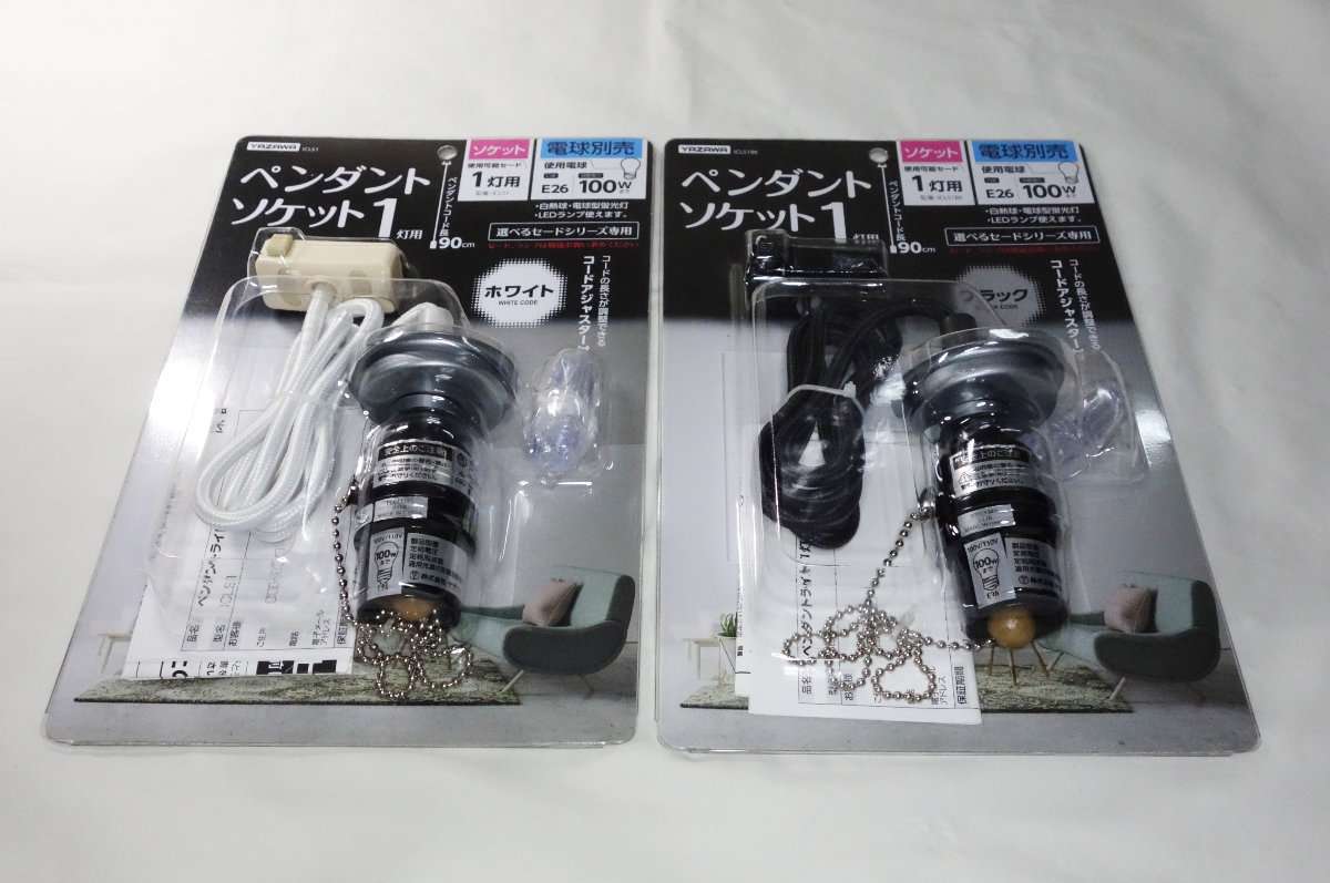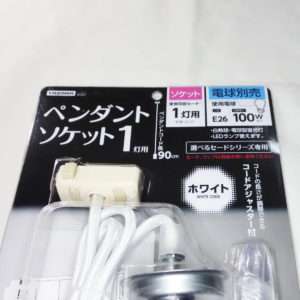 白い方のペンダントソケットと全くの同型の1灯用で、ソケットも通常の電球用のE26です。コードは壁紙や天井の色や部屋の雰囲気に合わせて決めるとよいでしょう。