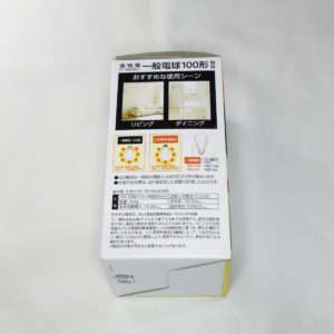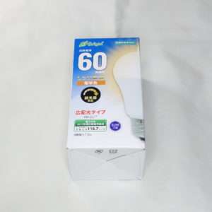 ライトを取り付ける箇所は調光器付きなので、E-Brightの調光器対応のLEDライトを選びました。補助的に使用するライトなので60形相当の電球色を選びました。E-Brightはオーム電機のブランド名で価格はかなり低く抑えられています。