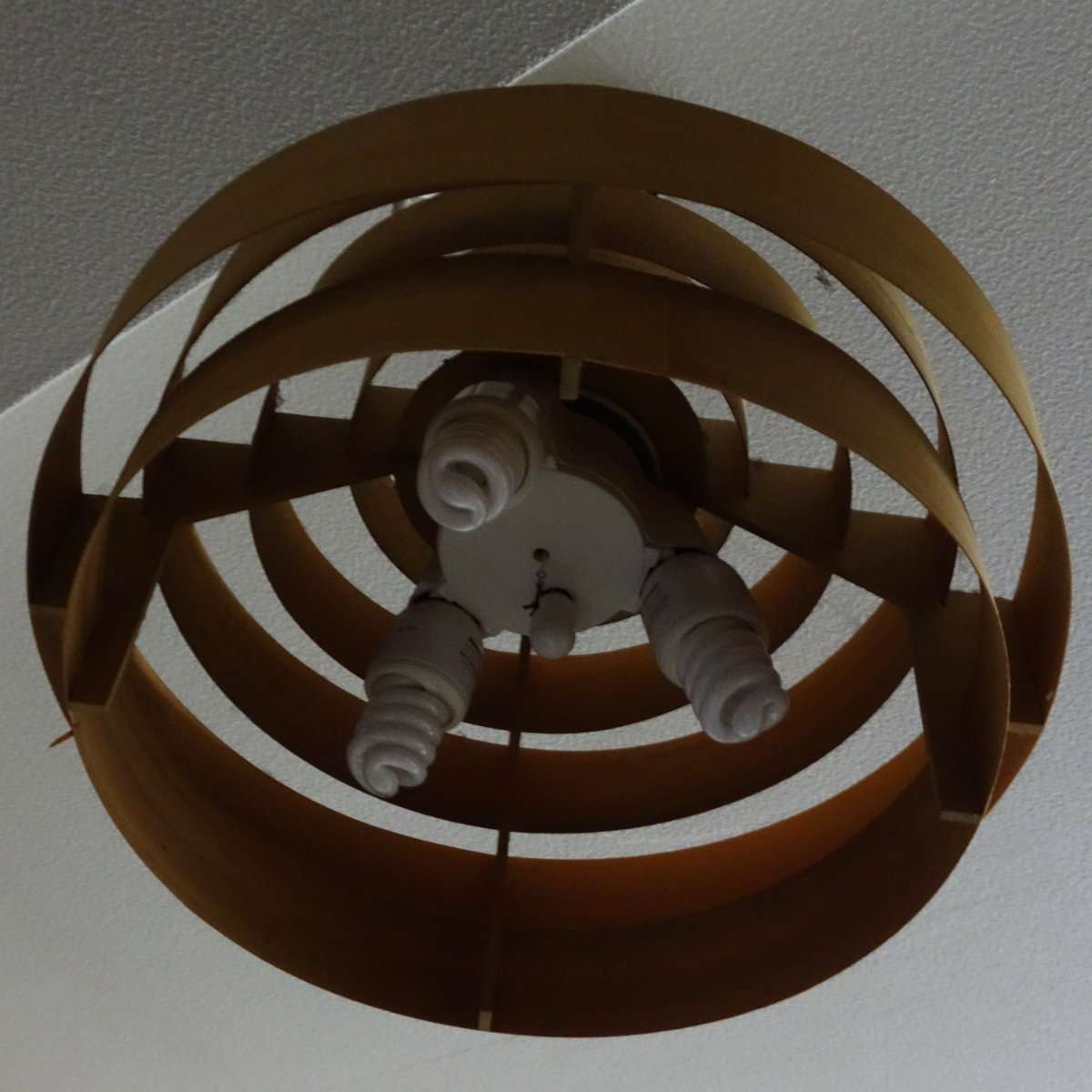 蛍光灯バルブが調光機能対応(以前は実現不可能と言われていた)になった時に入れ替えたライトです。さすがにもう古いので取り外す事にします。光量自体は問題ありませんでしたが、3つも電球の必要はありません。