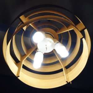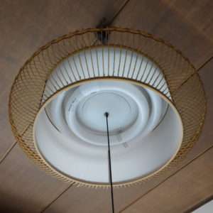 ペンダントソケットにLED電球を付け大体の長さにコードを調節したら、ペンダントソケットをランプシェードに取り付けます。もし壁のスイッチがない天井のライトでしたらLED電球は後で取り付けた方が安全です。