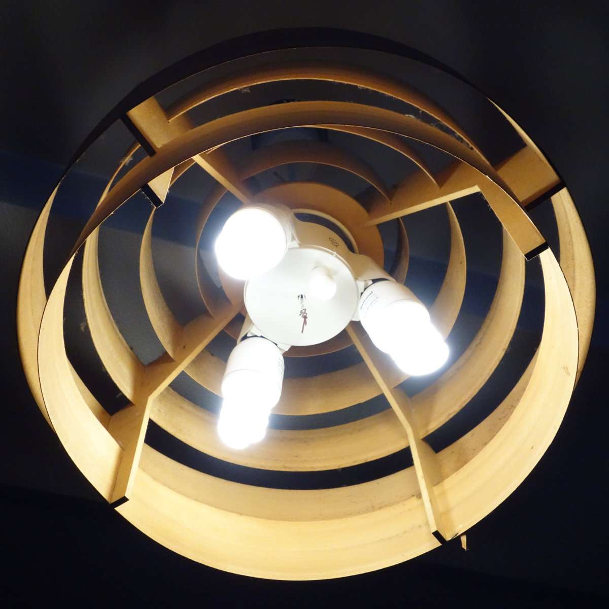 こちらも電源を入れライトが付くことを確認したら長時間使用して問題無いかを確認します。シェードもシンプルですしシェード自体が光をかなり遮るので横方向へはやさしいライトとなり光量も含めてよい感じに収まり60形ではなく100形の電球色にして正解でした。