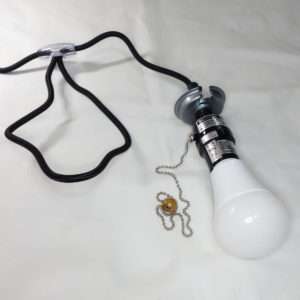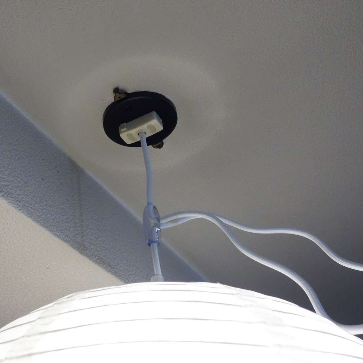 取り付けたら万が一不良品や取り付け不良で破裂などする場合を考えて、周りにいる全員をライトの近くから離し壁の電気のスイッチを入れます。つかない場合はペンダントソケットのスイッチが入っていないので、再度壁の電源を切ってからペンダントソケットの電源を入れて壁の電源を入れます。これでライトが点灯すれば通電自体は完了です。一応電気を長時間つけっぱなしにして変な匂いや熱を持っていないかを確認しましょう。