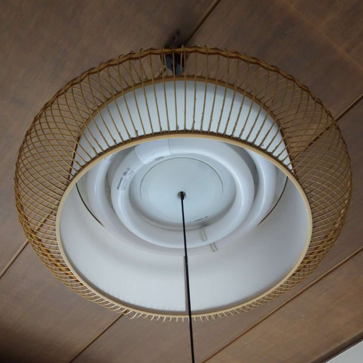 今時まさかの丸型の蛍光灯で動作に問題はないものの取り外します。取り外す際はコード側も壁側も電源を切ってからにしましょう。