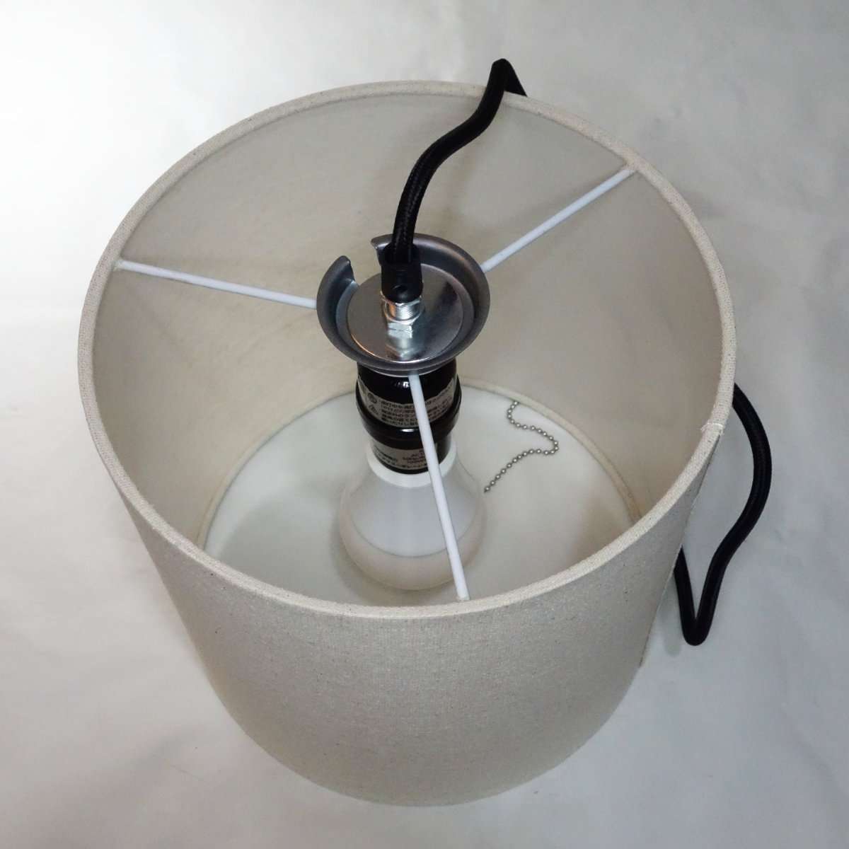 今回は2つのライトを交換するので、もう1つのライト交換に取り掛かります。ペンダントソケットは同じ物の色違いですが、シェードを布のタイプにしました。こちらもYAZAWAの商品でペンダントソケットの取り付けの相性も問題ありません。