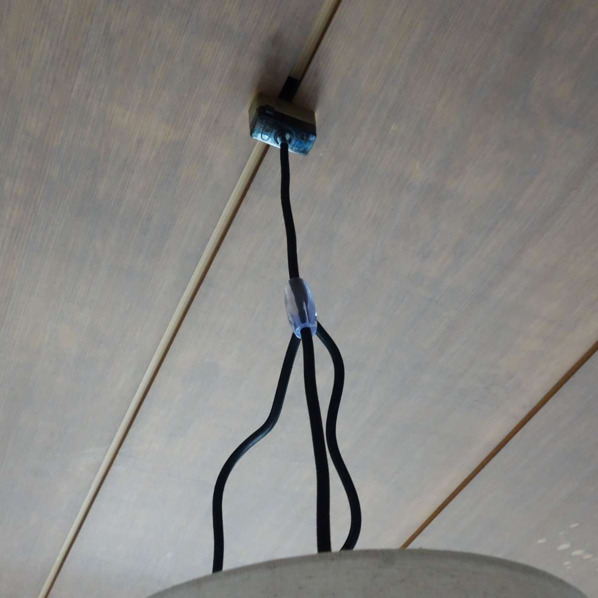 まずは壁の電源を切り、可能であればブレーカーも落としライトの電源は切った状態でペンダントソケットの取付部を天井に取り付けましょう。大体の家庭の天井の取り付けソケットはカチッと回して固定する引掛シーリングプラグ用になっていると思います。取り付けはとても簡単でプラグをソケットに挿して回すだけでペンダントソケットが固定されます。