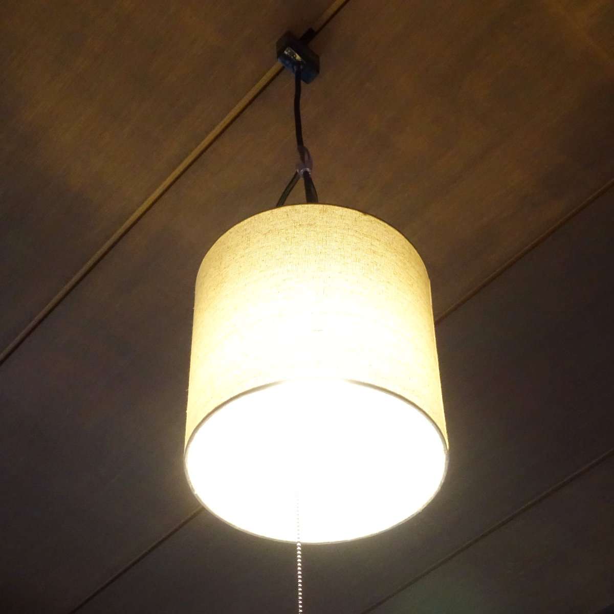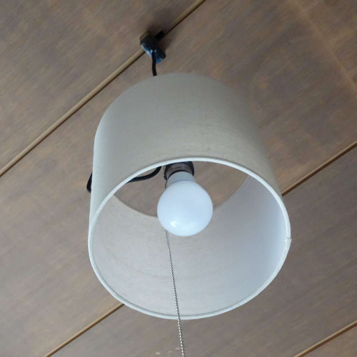 もう1つのシェイドは麻のような布生地でシンプルなデザインのものにしました。こちらもYAZAWAの商品なのでペンダントソケットが取り付けられます。シェイドも低価格で見た目がよいものはそれほど種類がなく売り切れている事があるので、時間の余裕を見て注文などをするとよいでしょう。
