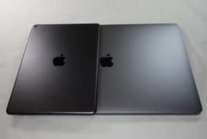 シルバーと比べると濃い色でスペースグレーとわかりましたが、同じ2019年型のiPad Air(第3世代)と比べるとなぜシルバーかもと思ったのがよくわかるほど色が薄いです。同じ年の同じカラー名でも色が全然違うので、社内のデザインチームも違い元から合わせる気すら無いのだと思います。