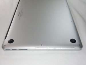 2012 Midの本体左側にはイヤホンジャックと通常のUSBポートが1つとThunderbolt 2ポートが2つあります。そしてその横に充電用のMagSafe(マグセーフ)用のコネクターがあります。これは本体を引っ張ってもマグネットで付いているので機器を壊さないように考えられた優れ物で、元ネタは日本製の電気ポットのマグネットで付く電源コネクターです。一節には新機種でマグセーフが復活なんて話もあるようで、USB-Cからすぐ変更されるかは気になるところです。