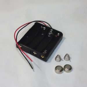 よくウェブなどに片側にLR44を2つ、もう片側に銀紙を入れて通電させると書いてありますが、これは絶対にやってはいけません。アルミホイルは電子回路用に作られたわけではなく熱と腐食性のガスを発生し、これが故障の原因になります。(単3電池の端子をアルミホイルで繋ぐと火が出ます)今回の電池アダプターは電子回路用のパーツを使用するので熱対策等もアルミホイルに比べて安全になっています。