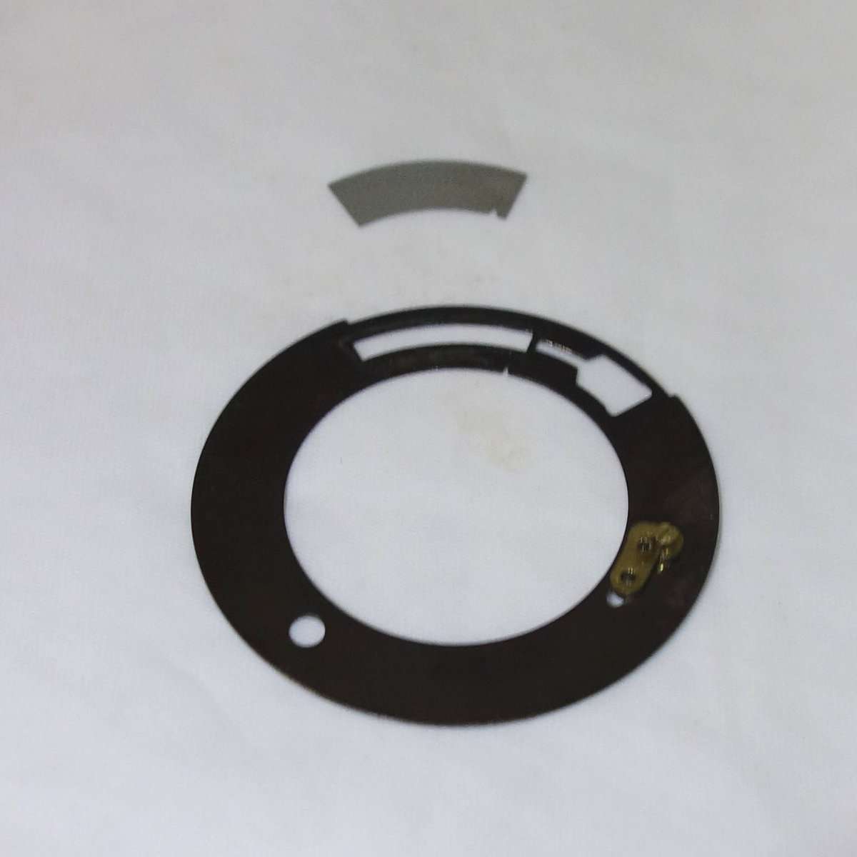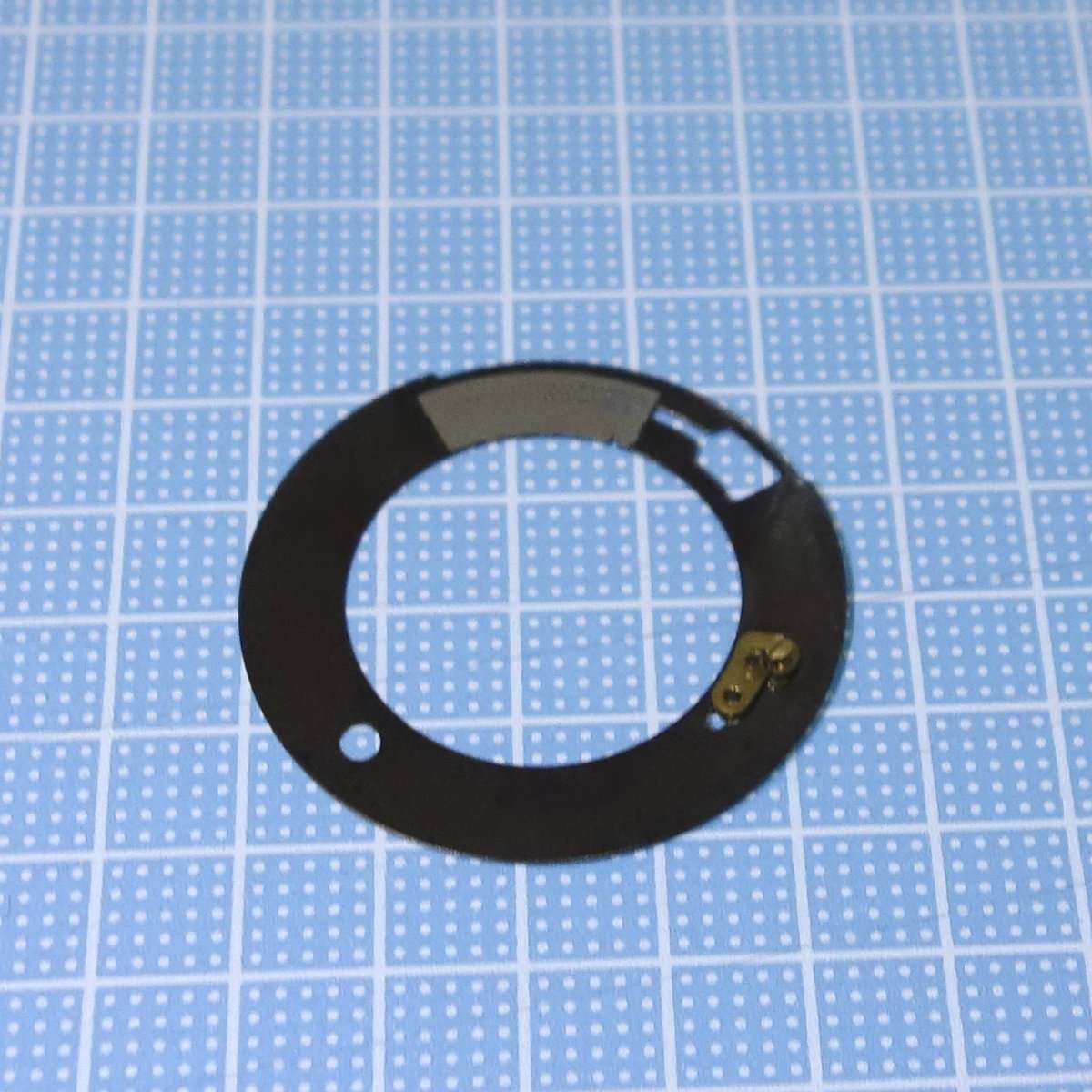 パーツをとりはずしていくと丸くて薄いメタルのプレートがレンズを取り囲むようについていると思います。これにISO/ASA設定用のプレートがついているのですが、脱落している場合は奥まったところに入り込んでいたりします。無理に各設定のリングなどを回すとパーツを壊してしまう可能性があるので、回らないパーツは無理に回したりしないようにしましょう。