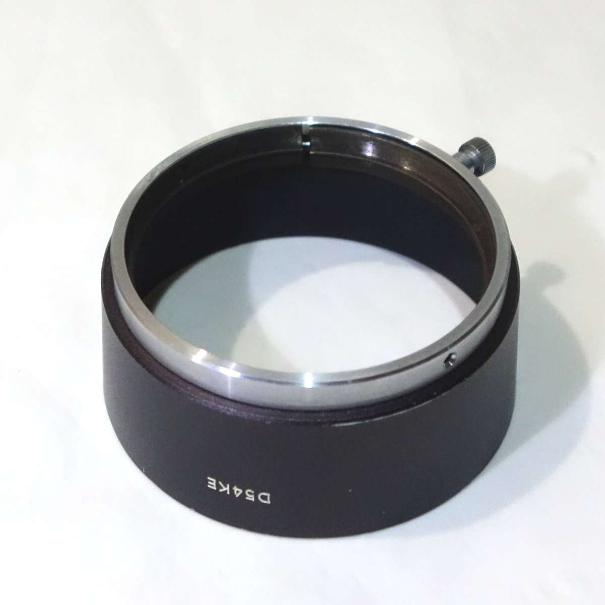 別の日にまたジャンク屋巡りをしてミノルタの純正メタルフードのD54KEを見つけました。 こちらもミノルタ MC Rokkor 55mm F1.7用だと思われますが、ねじ込み式ではなくかぶせ式となり、レンズ沈胴にかぶせて横についているネジで固定するタイプのメタルフードです。