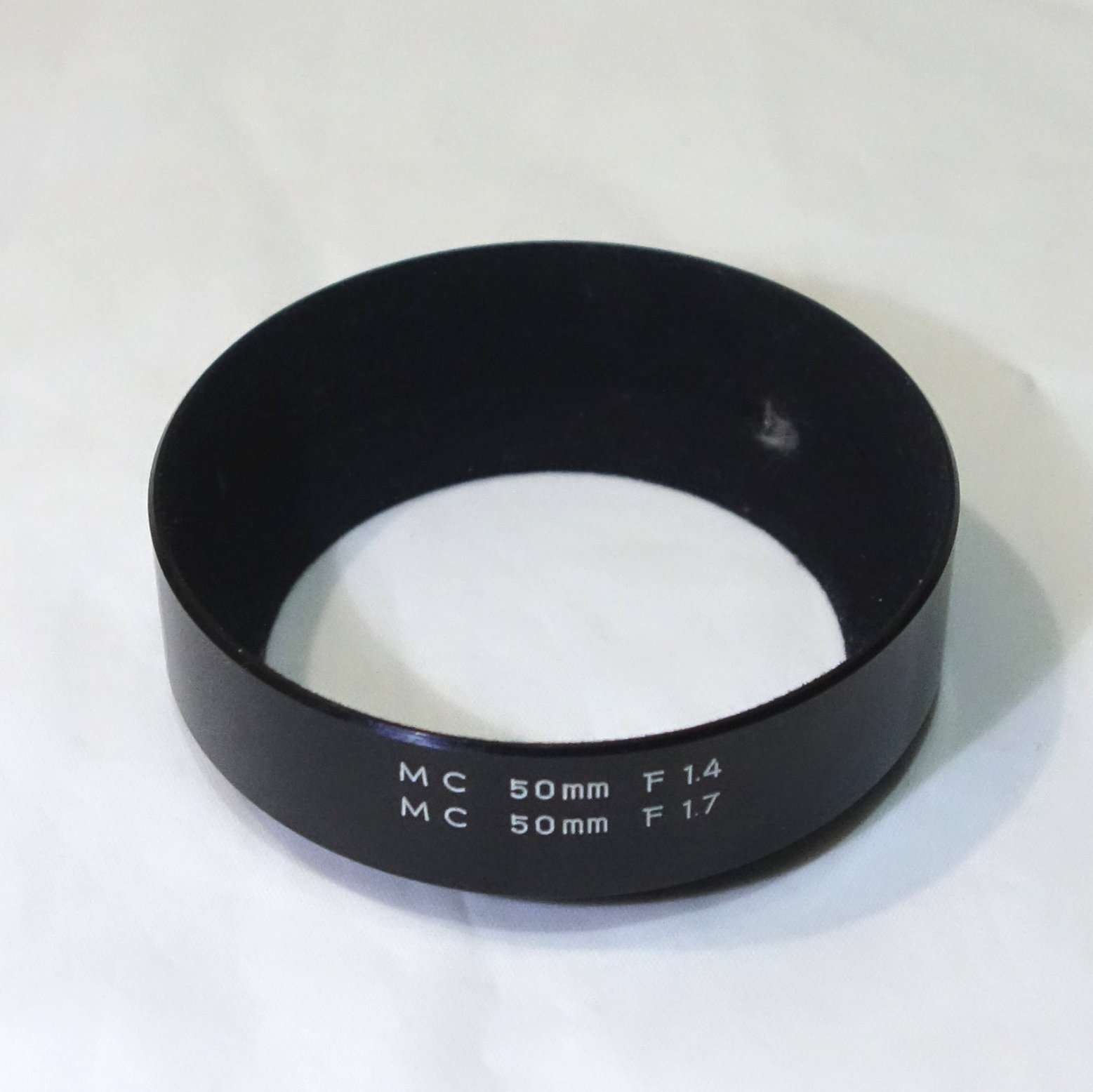 今度はMC Rokkor 50mm F.14とF1.7用のメタルフードを見つけ、こちらのフィルター取り付け径はMC Rokkorの標準の55mmとなります。こちらはメタルフードでも内側が反射防止の植毛がしてありサラサラした感触です。ホコリなどが付きやすいのですが、マスキングテープで軽く叩くとすぐ綺麗になります。