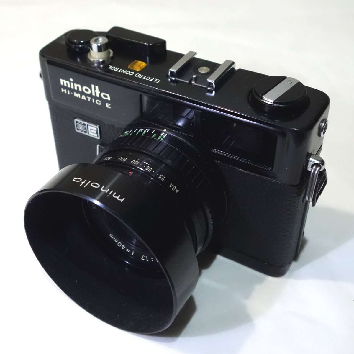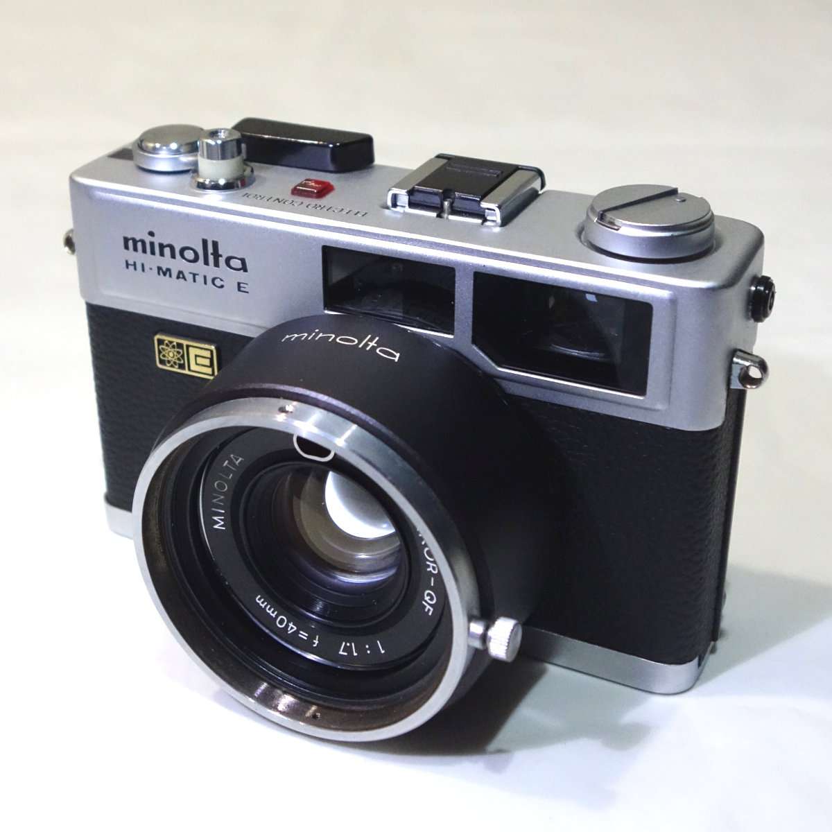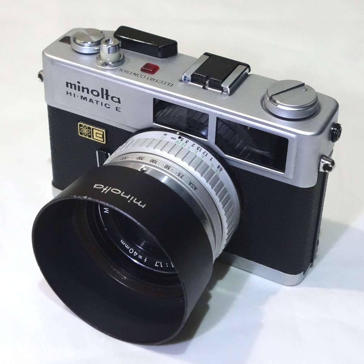 minolta Hi-Matic E(ハイマチックE)に似合うフードを探していましたが、やはりレンジファインダーフィルムカメラにはスリット入りのメタルフードが似合います。スリットが入っているのはライカ風と言われれるタイプで、格安な品がかなり出ています。スリットが入っているのは意味があり、一眼レフカメラと違いレンジファインダーカメラはファイダーからレンズが見えるので、なるべく視界がふさがれないようにするためです。