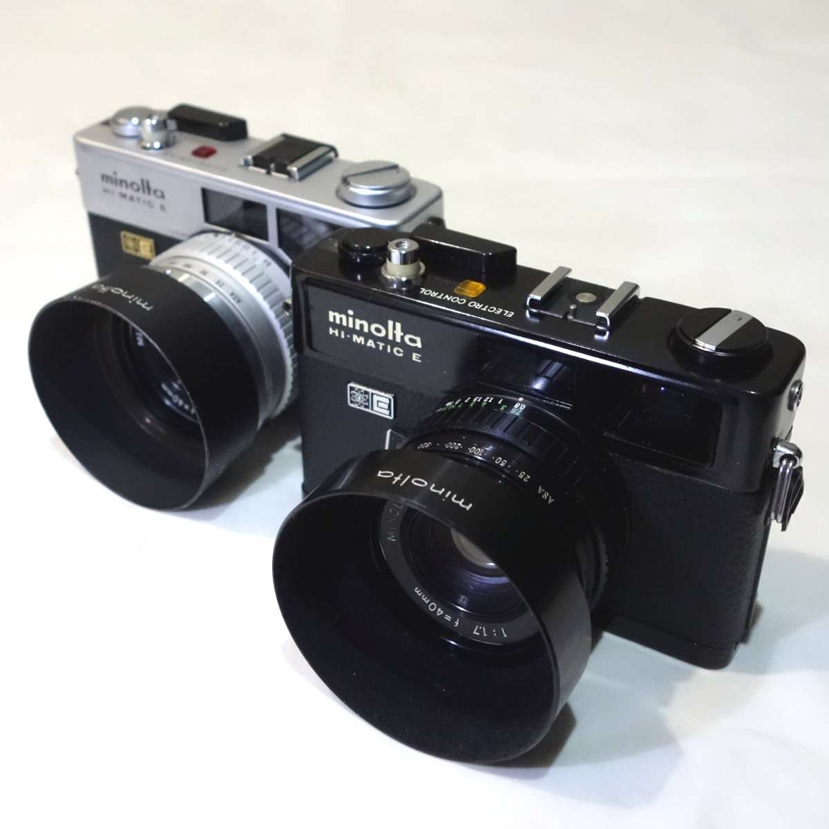 3つのハイマチックEに3つの純正メタルフードが揃ったので並べてみました。ミノルタ純正の中だとMC 50mm F1.4/F1.7用がハイマチックEには似合っています。