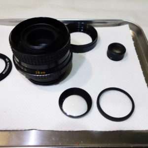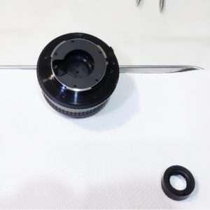 組み立てが終わったらカメラにいきなり取り付けずに絞りやフォーカス(ピント)を動かしてみて、マウント側の自動絞りのレバーなどが正常に動くかを必ず確認します。
