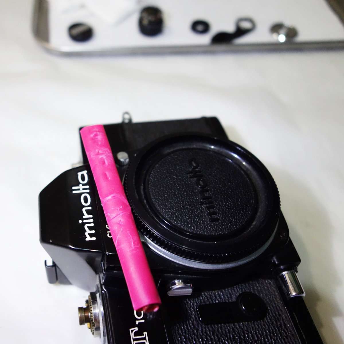 これまで使用していたミノルタSR-T101シルバーに追加したブラックを安定して撮影に使用出来るように整備と清掃をする事にしました。SR-T101の修理と調整は慣れているので、シャッタースピードの調整からフィルム室だけでなくプリズム側のモルトなども交換して完動品に仕上げていきます。