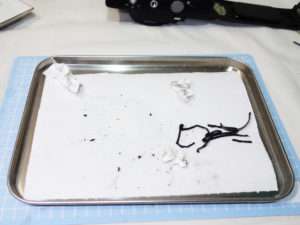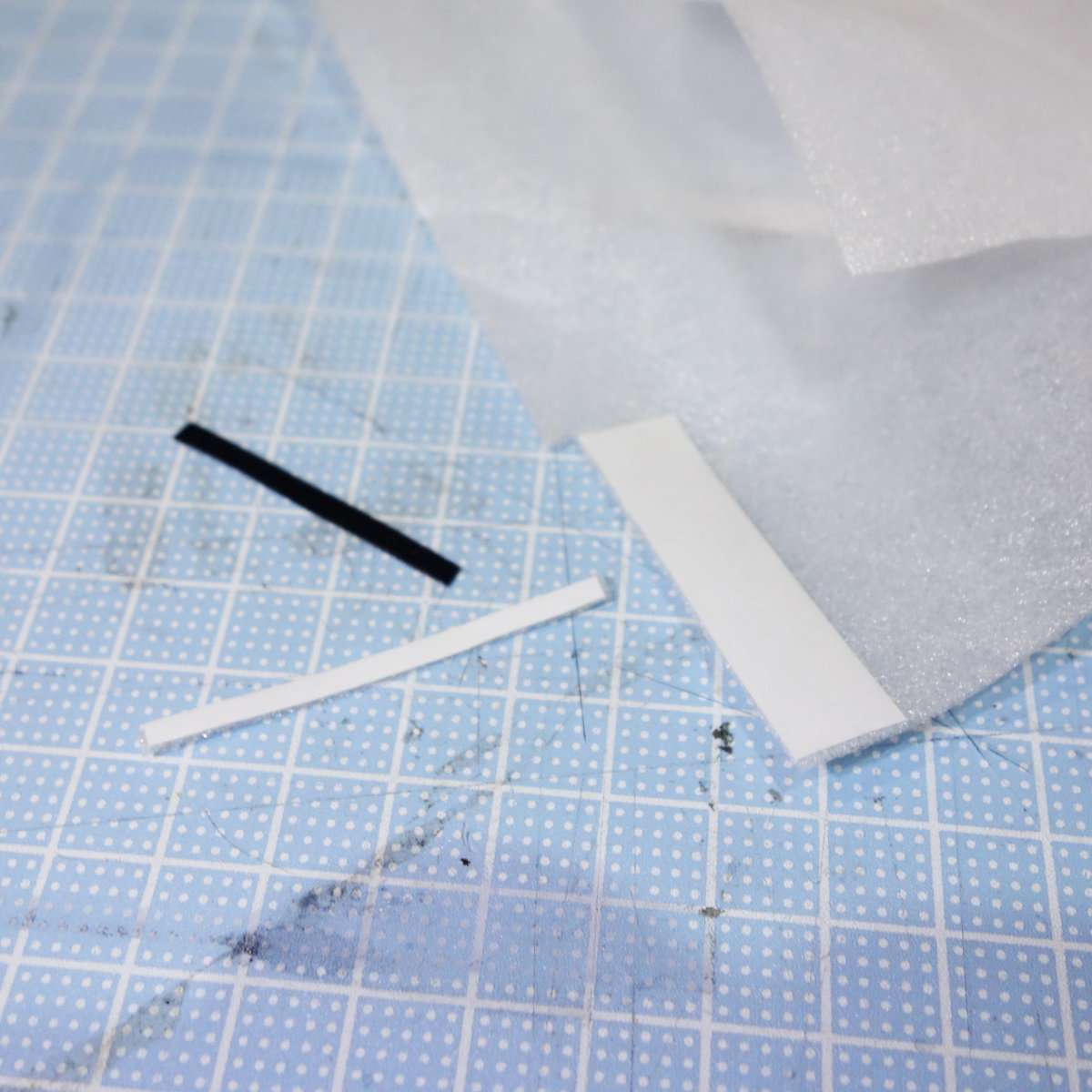 見た目的には黒いハイミロンですが、ミラーショック音を減らすにはスポンジの方が効果が高いので、サスペンションパーツにはスポンジを貼り付ける事にしました。ミラーアップした時のプリズム側への光線漏れなどを考えると黒いものを使用した方がよいので、スポンジ部分を黒く塗ってもよいと思います。