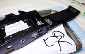 フィルム室のモルトにもハイミロンを使用しますが、カメラ本体側のモルトはレール内でかなり細くまっすぐ綺麗に貼るには根気がいります。レール部分以外ではカバー側とヒンジ部分にもモルトを貼る必要があります。