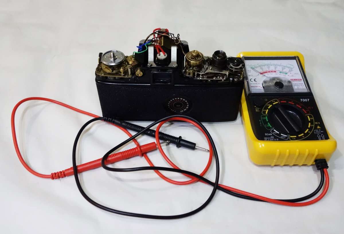後ろのCdSは動いているようなので、前側のCdSセルも取り外して用意したCdSと交換します。前後のCdSを交換して電源を入れると無事露出計が動き出しました。