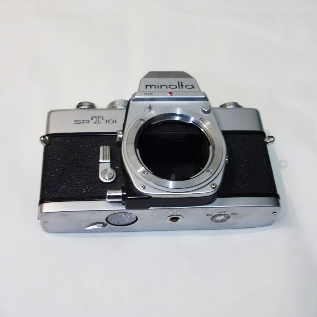 ミノルタSR-T101は電池を使用したTTL開放測光が可能な機械式カメラです。レンズマウントはSRマウント(MC、MDマウント)でミノルタRokkorレンズが使用出来ます。カメラの状態はかなり汚れていて、シャッター幕が緩んでシャッターが切れない状態になっています。ゴミやチリなどが残っているとトラブルも増えるので、シャッターを切れるようにする前に各部をまず綺麗にしていきます。(2回に分けてまとめます)